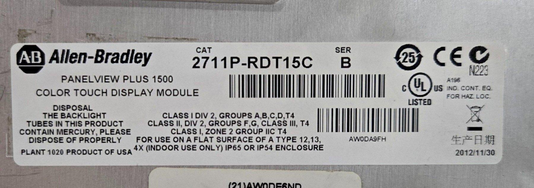OverviewThe ALLEN BRADLEY 2711P-T15C4D2 PanelView Plus 1500 is a high-performance industrial HMI (Human-Machine Interface) designed for real-time monitoring and control of automation systems. As part of the PanelView Plus 1500 series (Series A), this used 15-inch touchscreen display provides intuitive navigation, robust connectivity options, and seamless integration with Allen-Bradley PLCs and automation networks. Engineered for rugged industrial environments, this HMI ensures efficient machine operation, process control, and system visualization. Product Specifications
