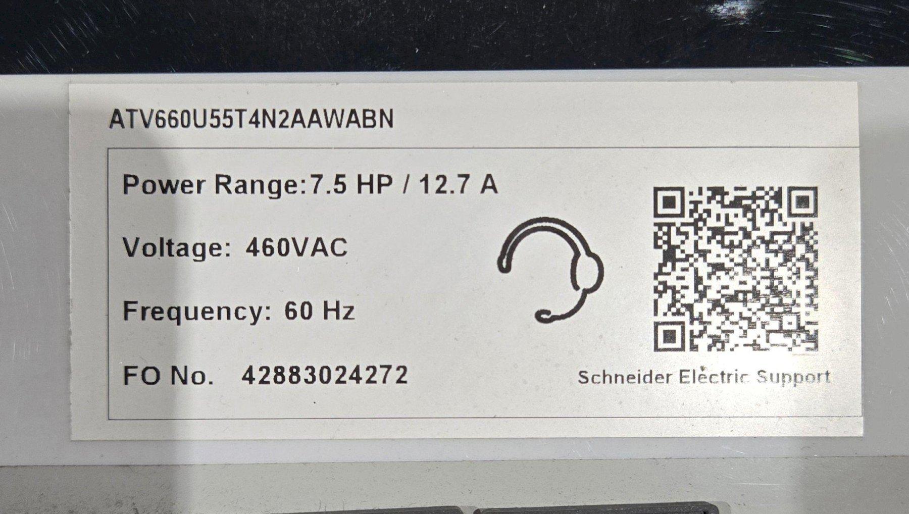 OverviewThe SCHNEIDER ELECTRIC ATV660U55T4N2AAWABN Variable Frequency Drive (VFD) is a used, industrial-grade motor control solution designed to provide precise speed and torque management for three-phase motors. Part of the reliable Altivar Process ATV600 series, this 7.5 HP drive delivers robust performance, energy efficiency, and advanced motor protection features. Built for demanding industrial environments, the ATV660U55T4N2AAWABN supports seamless integration into automation systems, making it a trusted choice for optimizing equipment operation and reducing energy consumption. Product Specifications