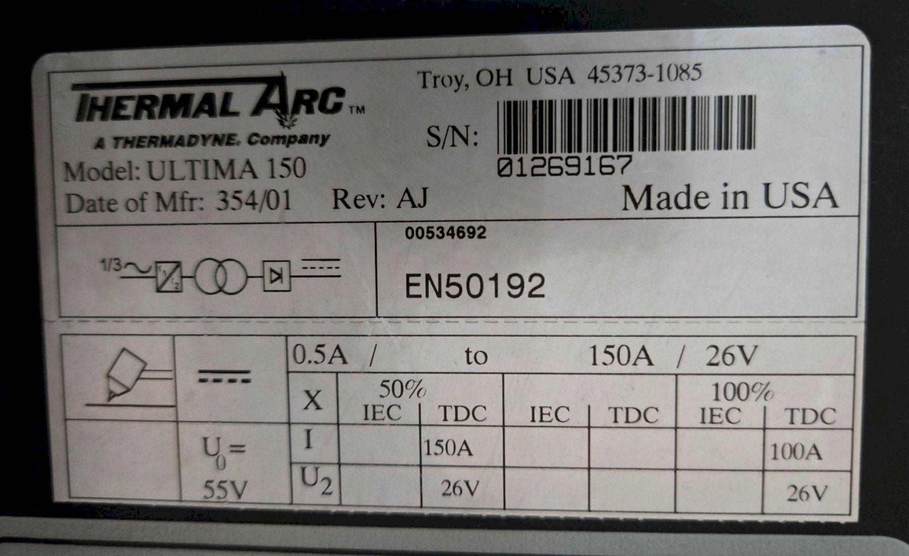 OverviewThe THERMAL ARC ULTIMA 150 Plasma Welder is a used high-performance plasma welding system engineered for precision and durability in demanding industrial environments. Known for its robust build and reliable arc stability, the Ultima 150 is designed to deliver consistent, high-quality welds with a maximum output of 150 amps. Ideal for TIG and plasma welding applications, this unit offers efficient operation and versatile control for a variety of metal fabrication tasks. Product Specifications