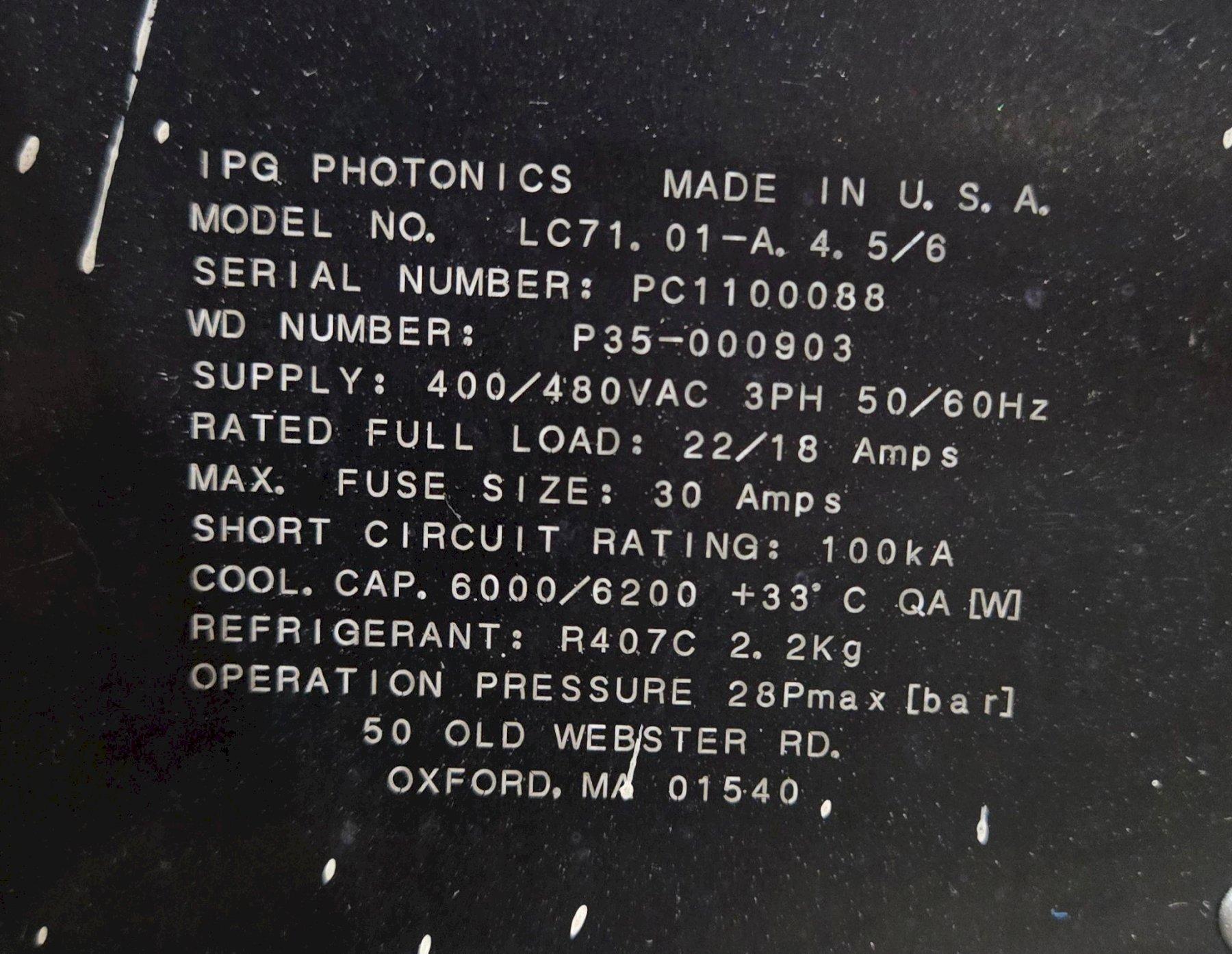 IPG PHOTONICS LC71. 01-A. 4. 5/6 LASER CHILLER, 400/480V, 3PH USED