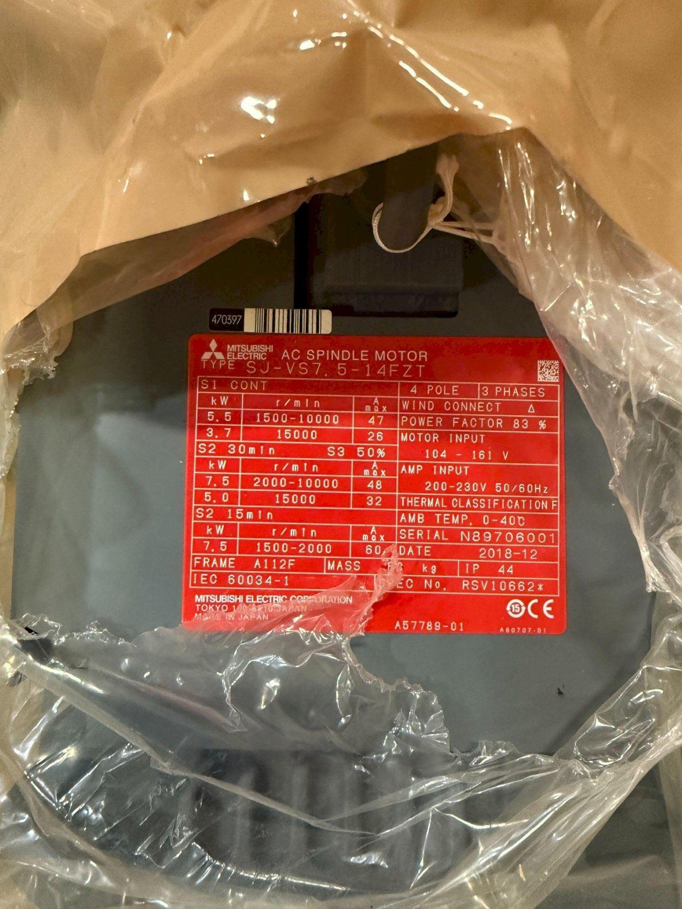 OverviewThe Mitsubishi SJ-VS7.5-14FZT AC Spindle Motor is a used high-performance industrial motor engineered for precision control and high-speed rotation in CNC and automated machining systems. Known for its robust build and smooth operation, this 7.5 kW spindle motor is part of Mitsubishi’s SJ-VS series, designed for demanding spindle applications requiring dynamic response, reliability, and long service life. Ideal for retrofitting or replacement in legacy systems, this motor delivers efficient torque and speed control for enhanced machining accuracy and productivity. Product Specifications