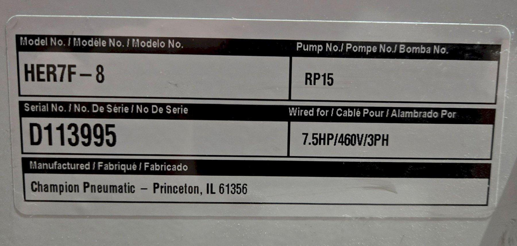 OverviewThe Gardner Denver HER7F-8 is a used, heavy-duty reciprocating air compressor engineered for dependable performance in industrial and commercial environments. Featuring a powerful 7.5 HP motor and a durable 80-gallon horizontal tank, this unit delivers reliable air supply for demanding pneumatic tools and systems. Designed for long service life and high-duty cycles, the HER7F-8 is ideal for workshops, fabrication shops, and maintenance operations. Product Specifications