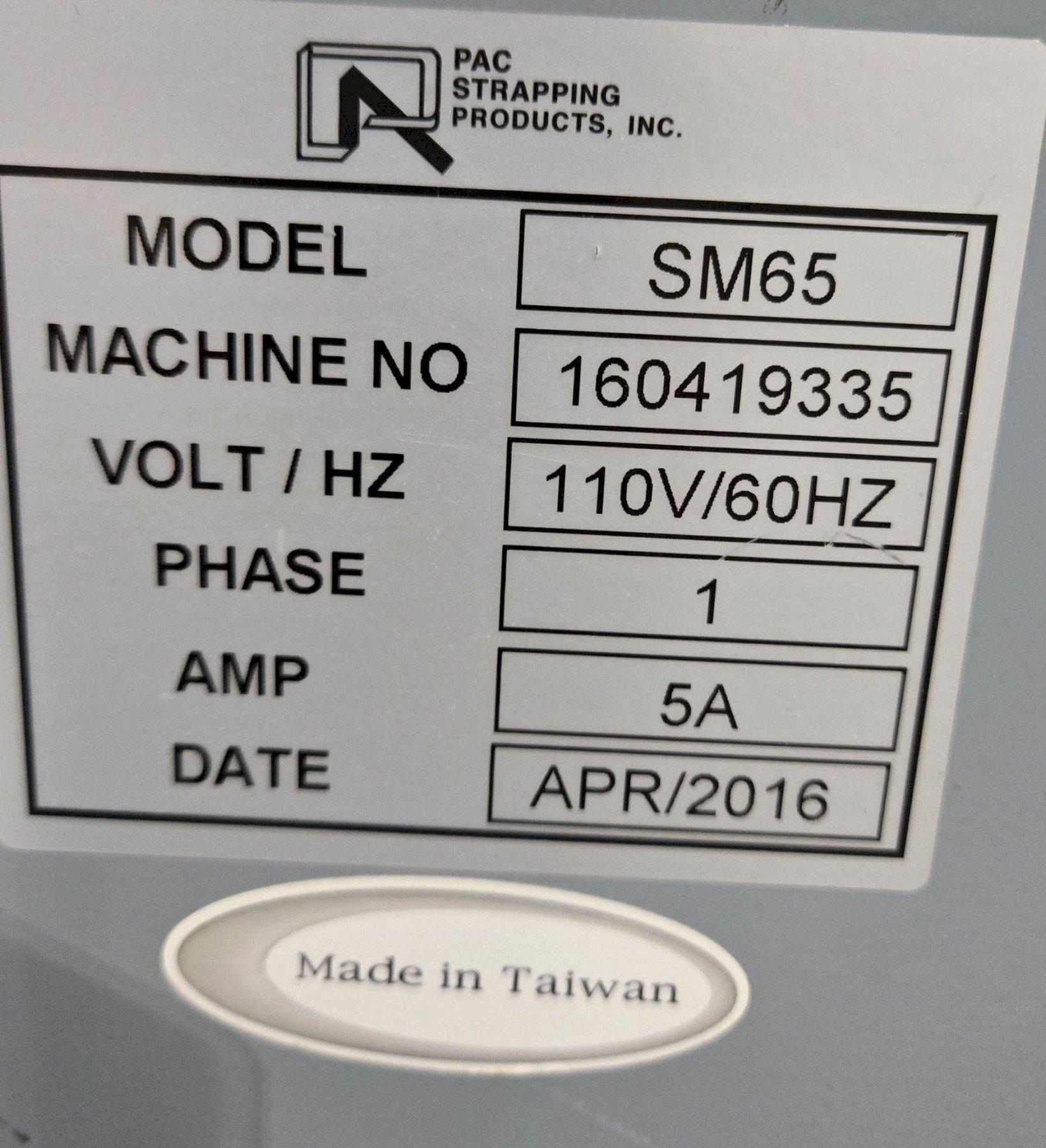 OverviewThe PAC Strapping Products SM65 is a used high-speed automatic strapping machine, manufactured in 2016 and built for consistent performance in demanding packaging and shipping environments. Engineered for medium to high-volume operations, the SM65 is a dependable solution for securing packages with polypropylene strapping. It features user-friendly controls, quick cycle times, and minimal maintenance requirements. This unit includes a partial roll of banding, making it ready for immediate integration into your packaging line. Product Specifications:• Model Number: SM65 • Manufacturer: PAC Strapping Products • Year of Manufacture: 2016 • Strap Type: Polypropylene (PP) • Strap Width Compatibility: Typically 5mm–15.5mm • Cycle Speed: Up to 65 straps per minute • Power Requirements: 110V, 60Hz, single-phase (varies by configuration) • Included Accessories: Partial roll of strapping band • Condition: Used
