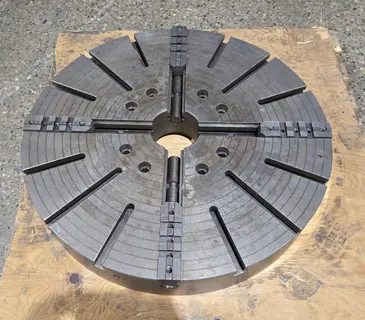 OverviewUnknown brand and model lathe chuck for sale. 4 jaw chuck with an outer diameter of 36 inches and an inner diameter opening of six inches and a depth of 5.75 inches. |