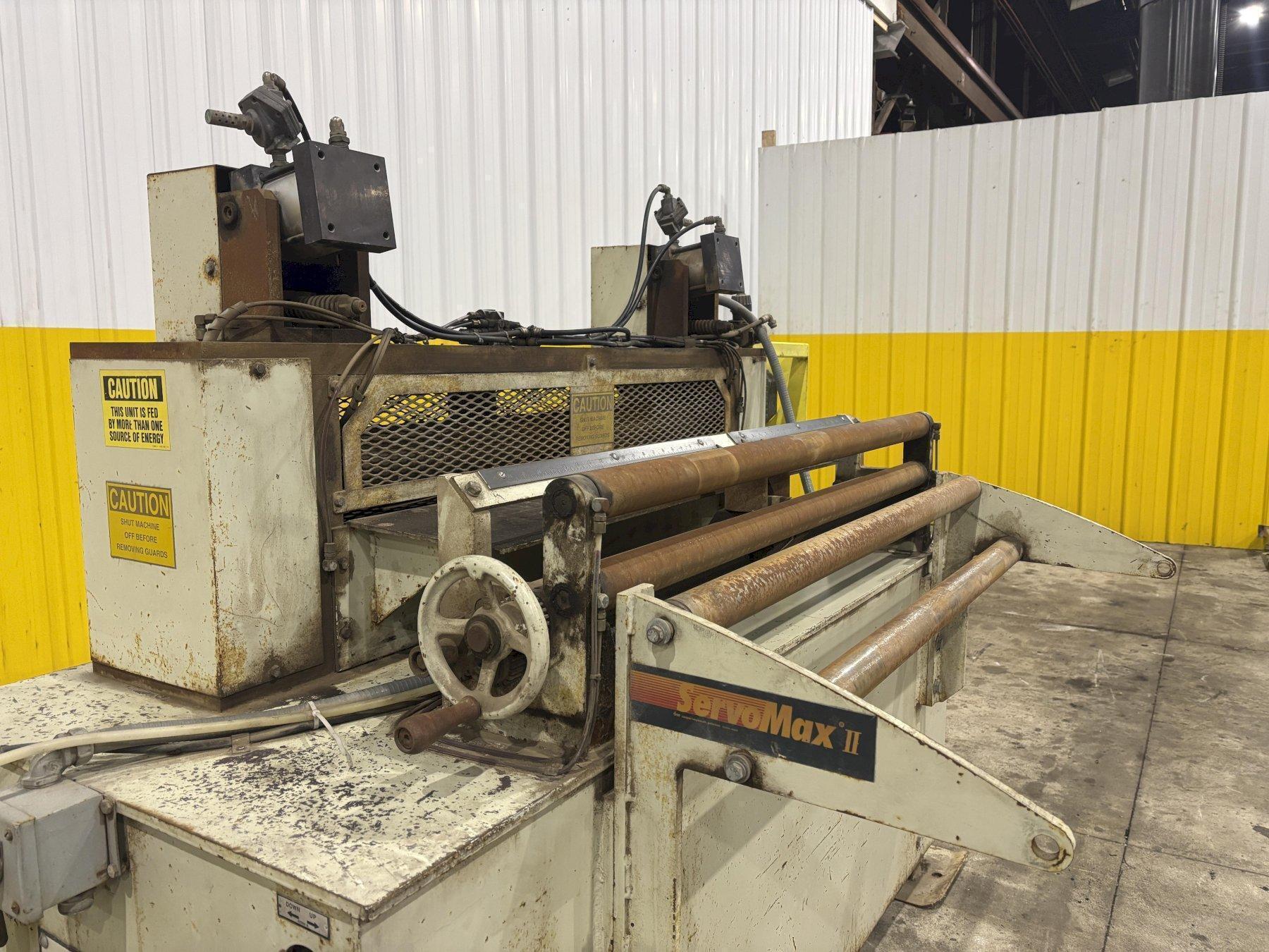 OverviewThe Used 36″ CWP Model SMX36 Servo-Max II Servo Feeder is a precision coil feeding system designed for high-speed, high-accuracy material handling in stamping and press line operations. Featuring a 36-inch wide material capacity, this servo feeder is ideal for progressive die operations and automated production environments. Known for its robust construction and reliable performance, the Servo-Max II model integrates easily with presses and uncoilers to streamline coil processing. Located in Northwest Ohio, this unit is well-suited for metal stamping facilities looking for a dependable and cost-effective servo feed solution. Specification TableModel SMX36 Capacity 36" wide x .125" thick Direction R-->L Motor Electrocraft 5.1 KW Peeler Table Entry & Exit Pinch RollsProduct Specifications
