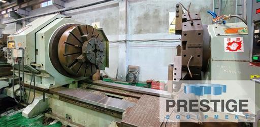 Maximum Swing Over Bed 59.05" Maximum Swing Over Carriages 43.30" Distance Between Centers 590.55" Distance Between Chuck Faces 62.99" Max Part Length at 27.5" Diameter 590.55" Spindle Speeds, Max (2-Ranges) 5 - 300 RPM Spindle Bore 7.87" - 27.55" Spindle Motor 49 HP Equipped With: Fanuc 0-T CNC Control Center Drive Headstock with 27.5" Spindle Bore Moveable Headstock (2) Tailstocks, programmable Front & Manual Rear (2) 8 Position Turrets, Front & Rear Coolant system |