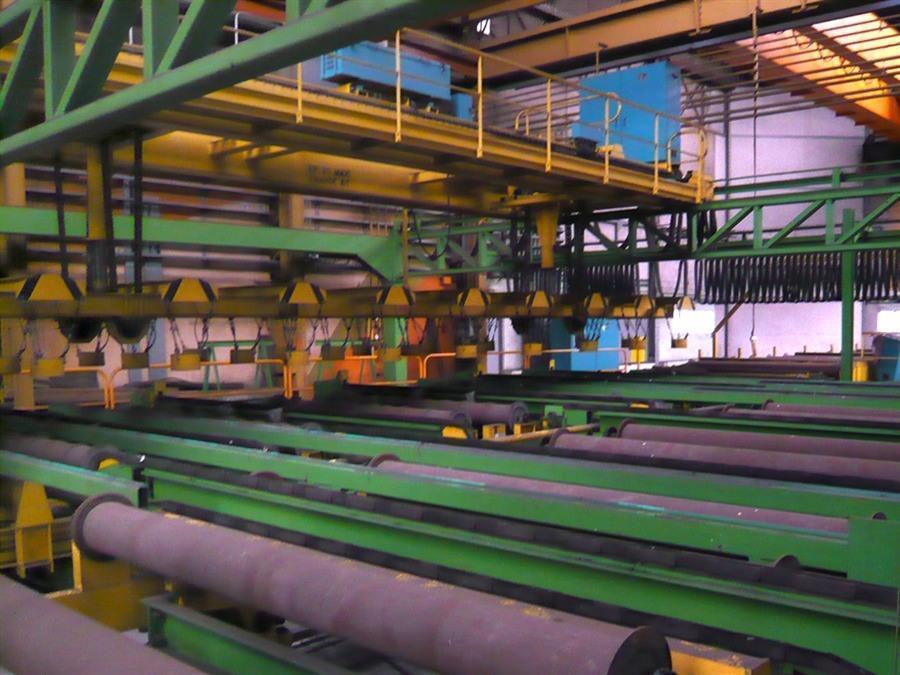 • Overhead crane with magnetic hoist for positioning large plates