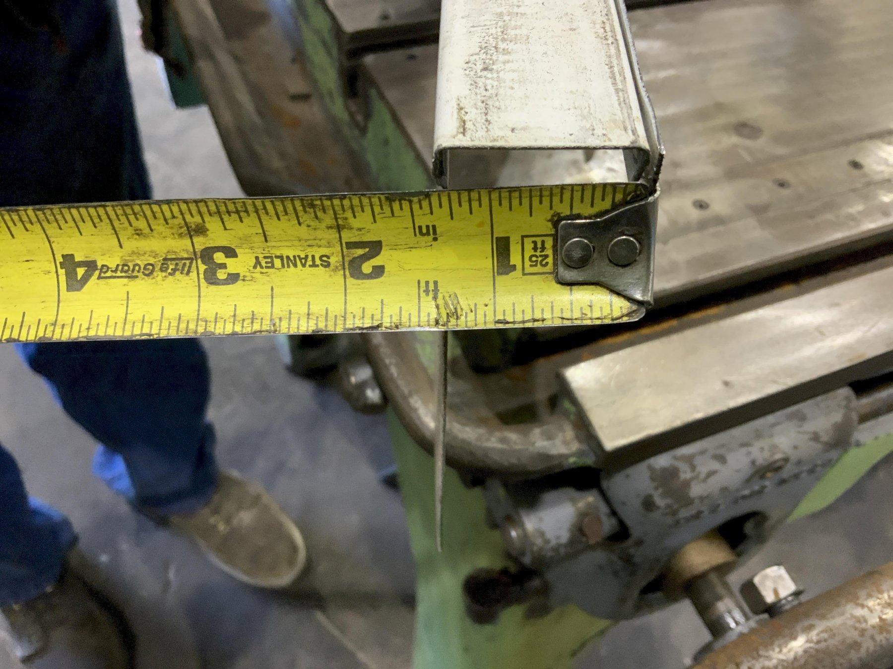 SERIAL NUMBER ......................... 00211-2301 MODEL ................................ C11 025 YEAR NEW ............................. 1977 CAPACITY ............................. 110 TON STROKE OF SLIDE ...................... 7" SHUT HEIGHT, SDAU (OVER BOLSTER) .... 13.7" ADJUSTMENT POWER ..................... 3.5" AREA OF BED (T-SLOTTED) .............. 27" X 56" AREA OF RAM (T-SLOTTED) .............. 20" X 24" STROKES PER MINUTE ................... 50 SPM BED BOLSTER (T-SLOTTED) .............. 27" X 56" X 5" WIDTH OF HOLE THROUGH BACK ........... 26.5" FLOOR TO TOP OF BOLSTER .............. 35" AIR CLUTCH AND BRAKE ................. YES AIR COUNTERBALANCES .................. YES SINGLE, INCHING & CONTINUOUS ......... YES DUAL PALM BUTTONS ..................... YES ONE SHOT LUBE ......................... YES ADJUSTMENT MOTOR HP .................. 1/4 MAIN DRIVE MOTOR HP .................. 10 |