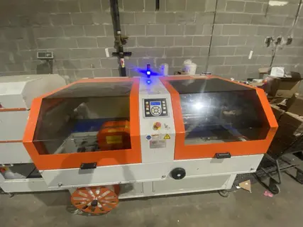 All specifications are assumed to be correct but must be confirmed by the purchasing entity.,Clamco 6800CS Automatic Side Sealer Shrink Wrapper: – Production Capacity: up to 70 cycles/min – Conveyor speed: up to 100 ft/min – Cross seal bar width: 19.75″ – Product width (max): 16″ – Product height (max): 8″ – Product length (max): unlimited – Film width range: 13″ min – 23.5″ maximum – Film roll diameter (max): 13.75″ – Electrical: 220V, 3 Ph, 60Hz, 10A, 2330 Watts – Air: not required – Machine size: 75″ L x 58″ W x 60″ H – Weight: 1,800 lbs All specifications are assumed to be correct but must be confirmed by the purchasing entity.,Clamco 4T Heavy Duty Heat Shrink Tunnel – Tunnel opening width: 15.5″ – Tunnel opening height: 9″ – Tunnel inside height: 11″ – Tunnel inside length: 26″ – Overall dimensions: 38″L x 30″W x 59″H – Conveyor speed (max): 125 feet/minute – Electrical requirements: 220V, 3 Ph, 60 Hz, 16A – Tunnel heating power: 6,000 watts All specifications are assumed to be correct but must be confirmed by the purchasing entity. |