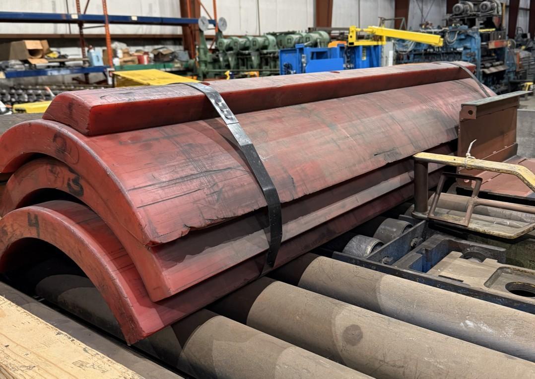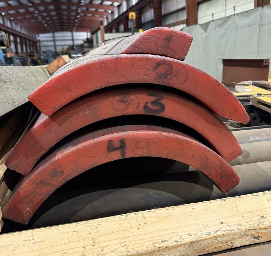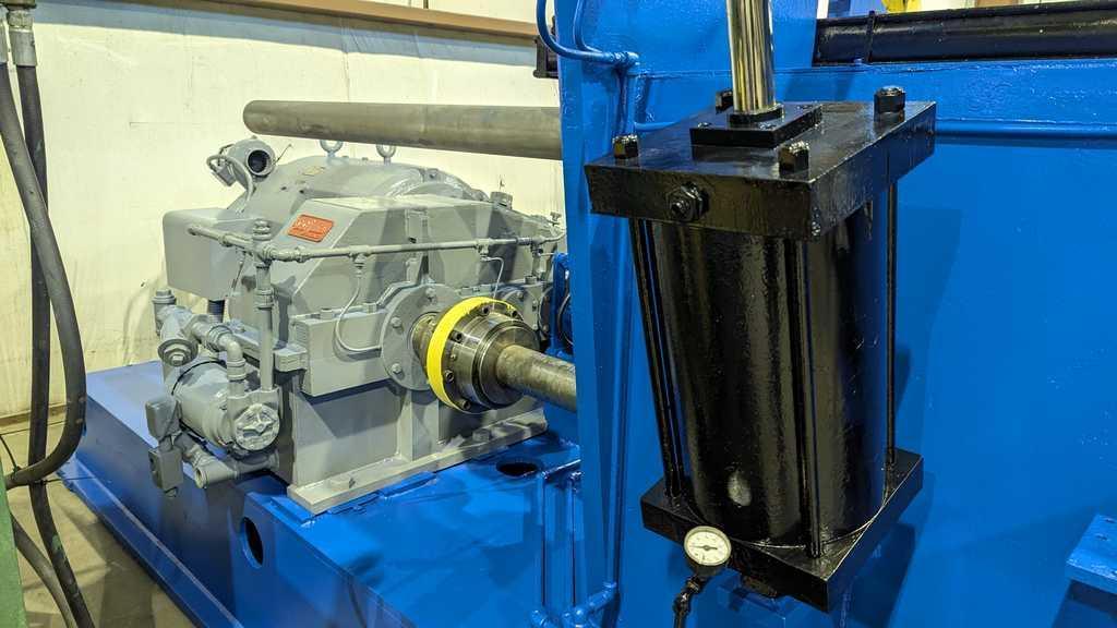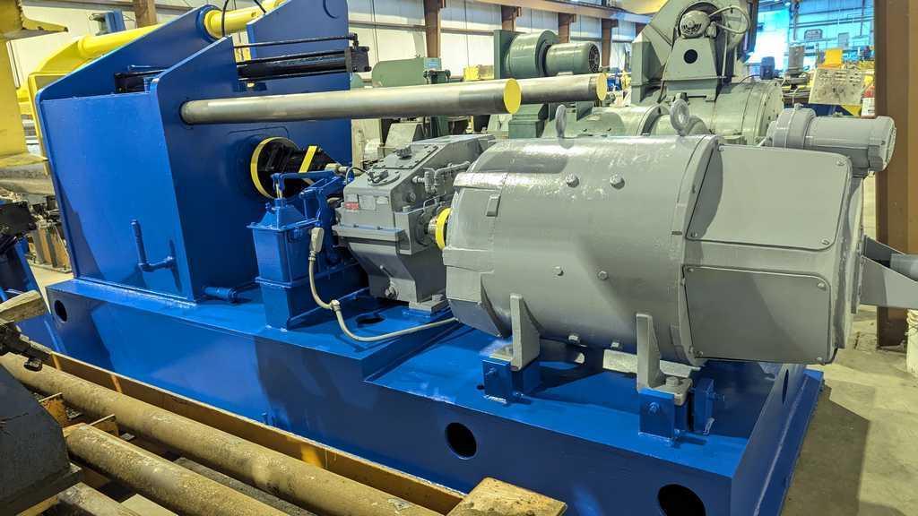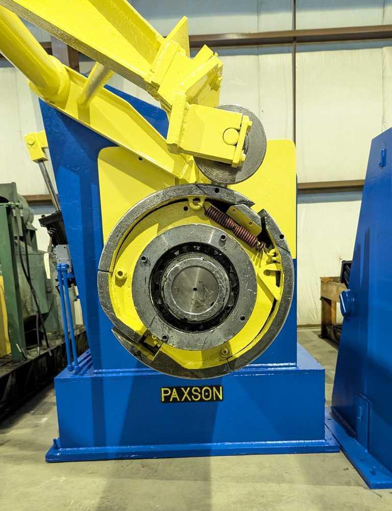 Stock # 14524 -20" Dia. Drum with 24" Pads -66" Face Hard Chromed Drum -84" Max. Coil O.D. -Powered Clamp and Expansion -Overarm Separator -Hydraulic Pushoff -Air powered Holding Brake -150 HP Main DC Motor, 850/2000 RPM, 500 V (Less SCR Drive) -Main Gear Box w/3.5:1 Ratio (approx.) -D.O. James 2 Speed Reducer w/5.41:1 and 10.8:1 Ratios -Outboard Bearing Support for 50,000# Capacity Note: 40,000# Capacity without Outboard Support -Passline: 48" from Floor to center of Drum -Line Direction: Right to Left **TEMPORARY SPECIFICATIONS SUBJECT TO REVISIONS** **PRICE QUOTED AS IS WHERE IS SUBJECT TO PRIOR SALE** **ALL SPECIFICATIONS ARE SUBJECT TO REVISIONS** |
