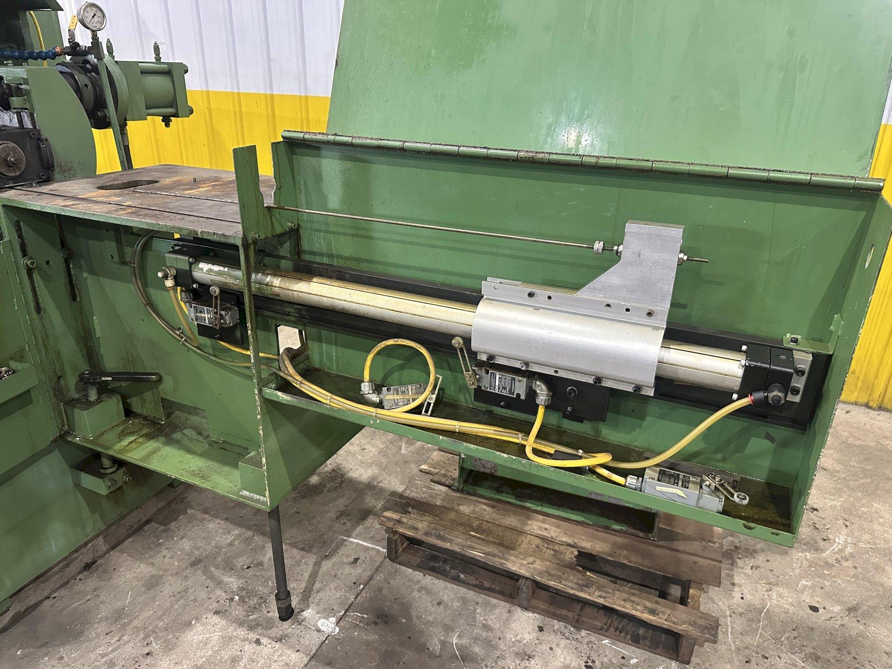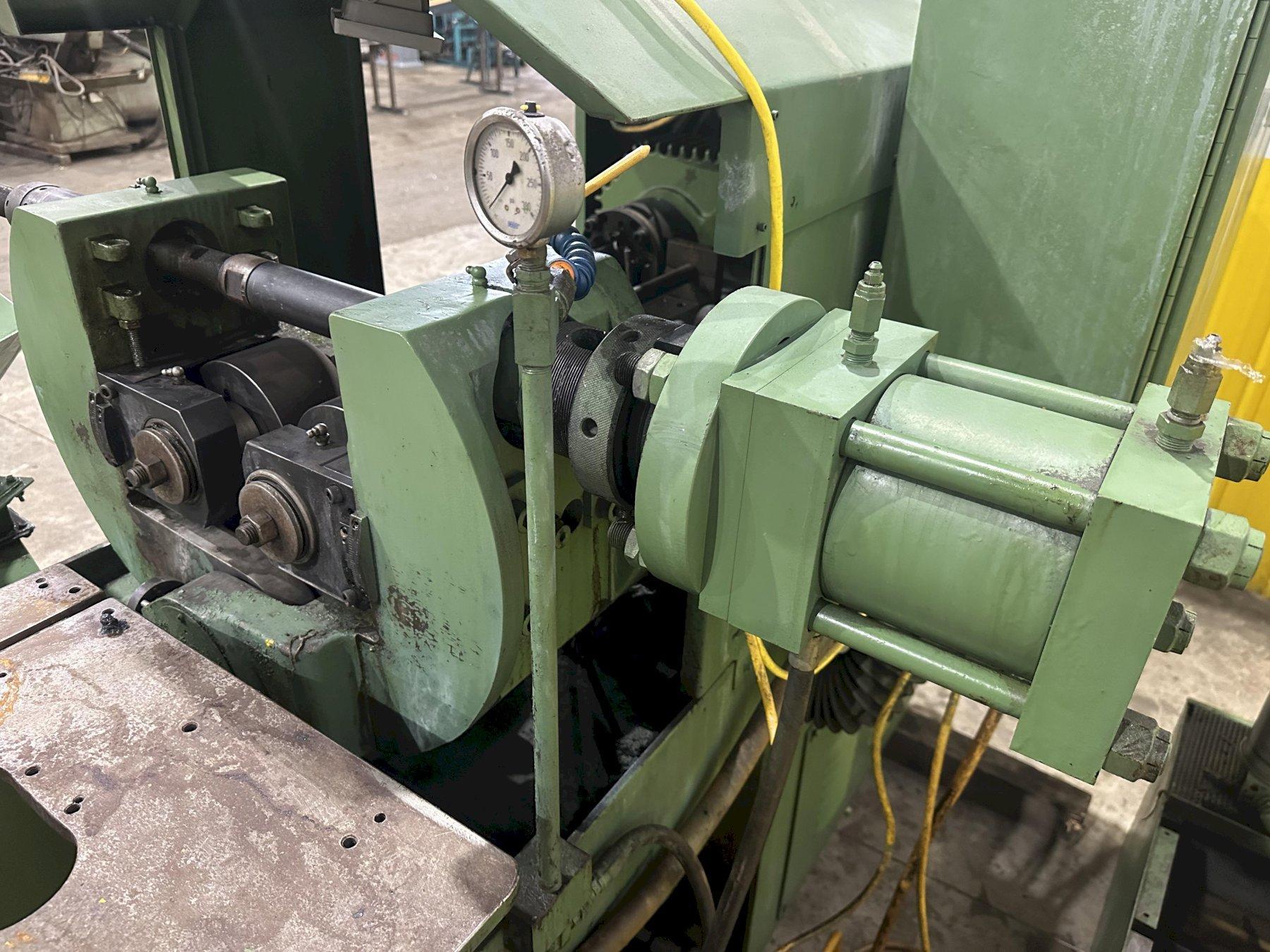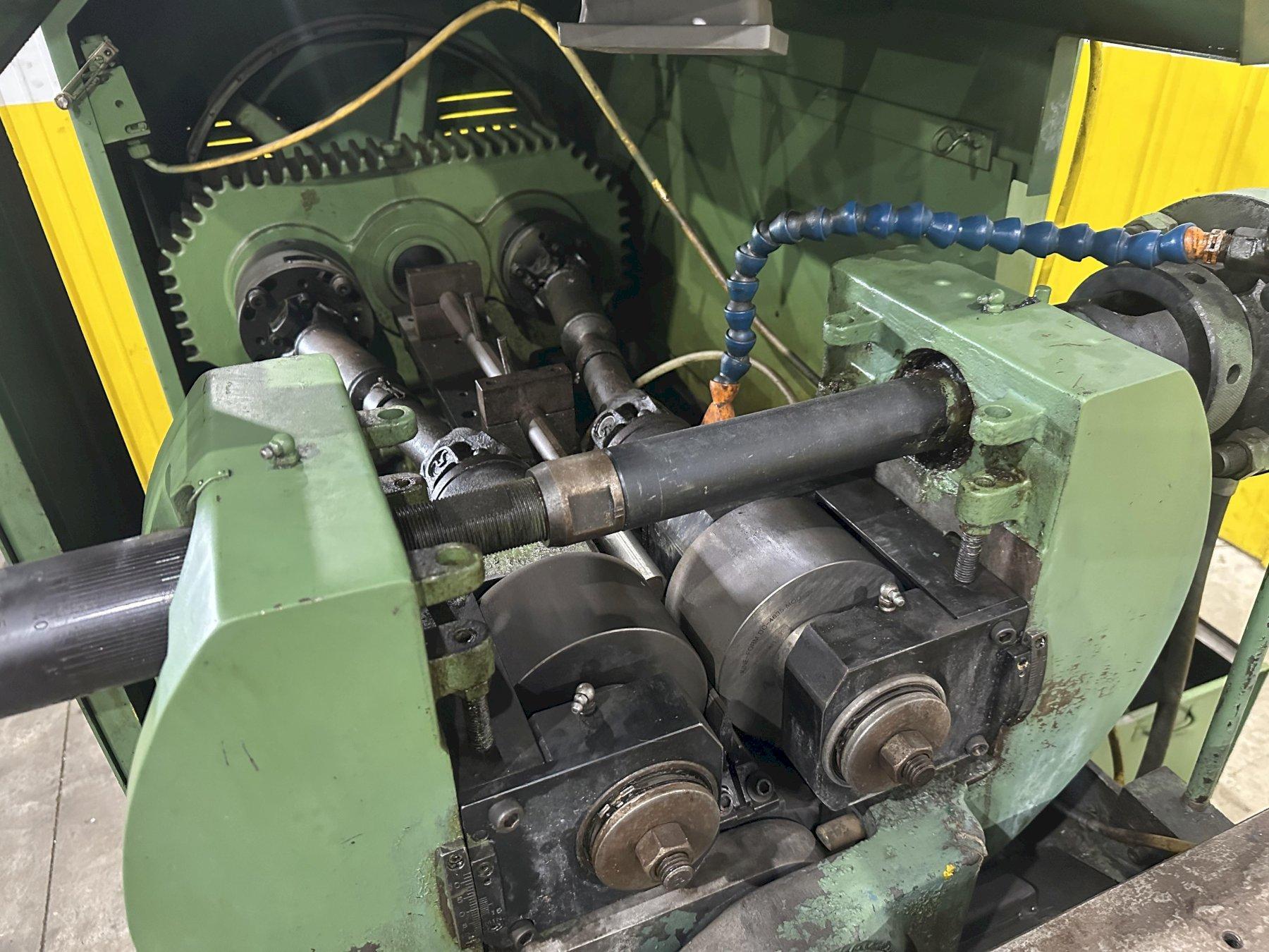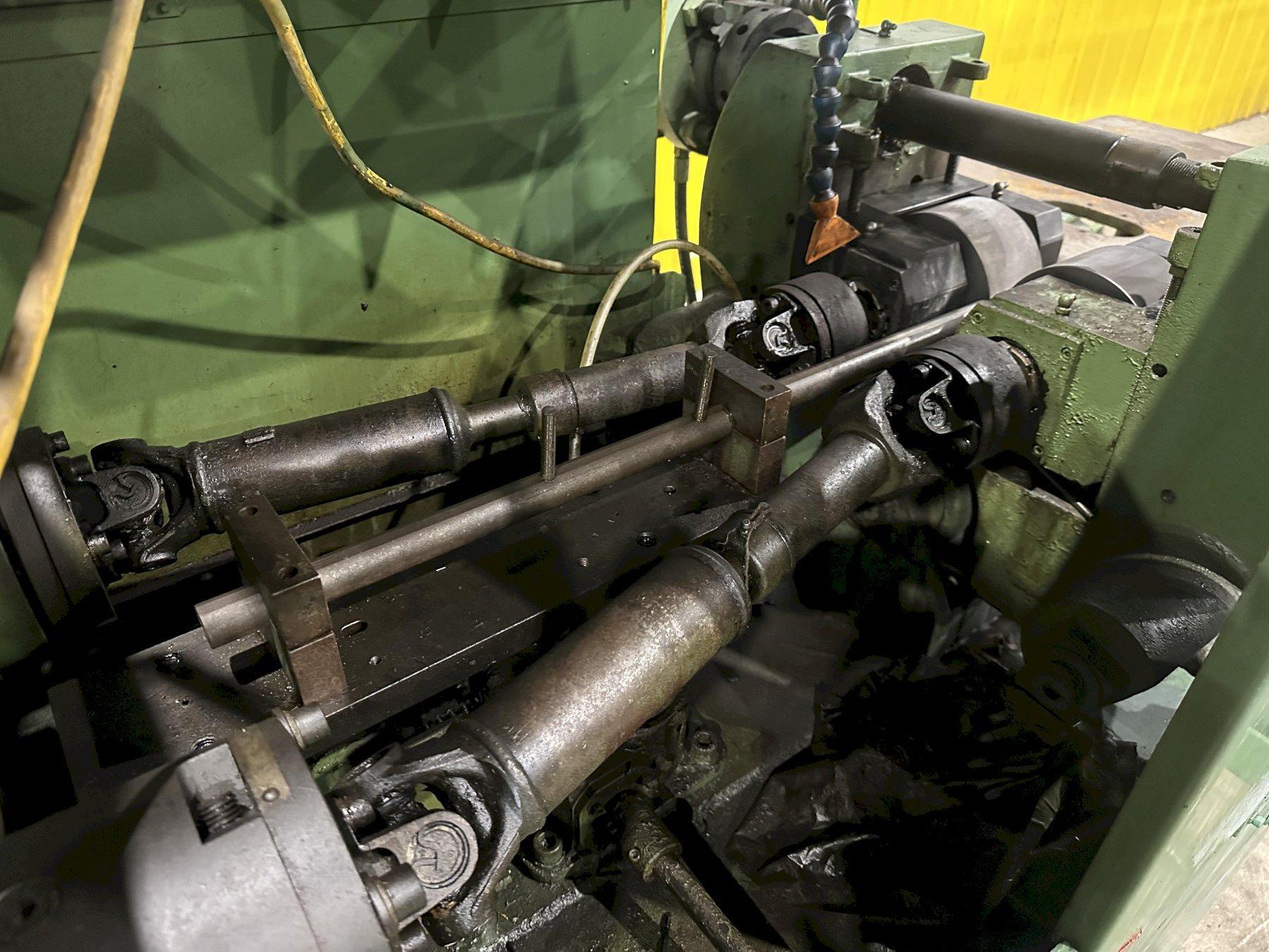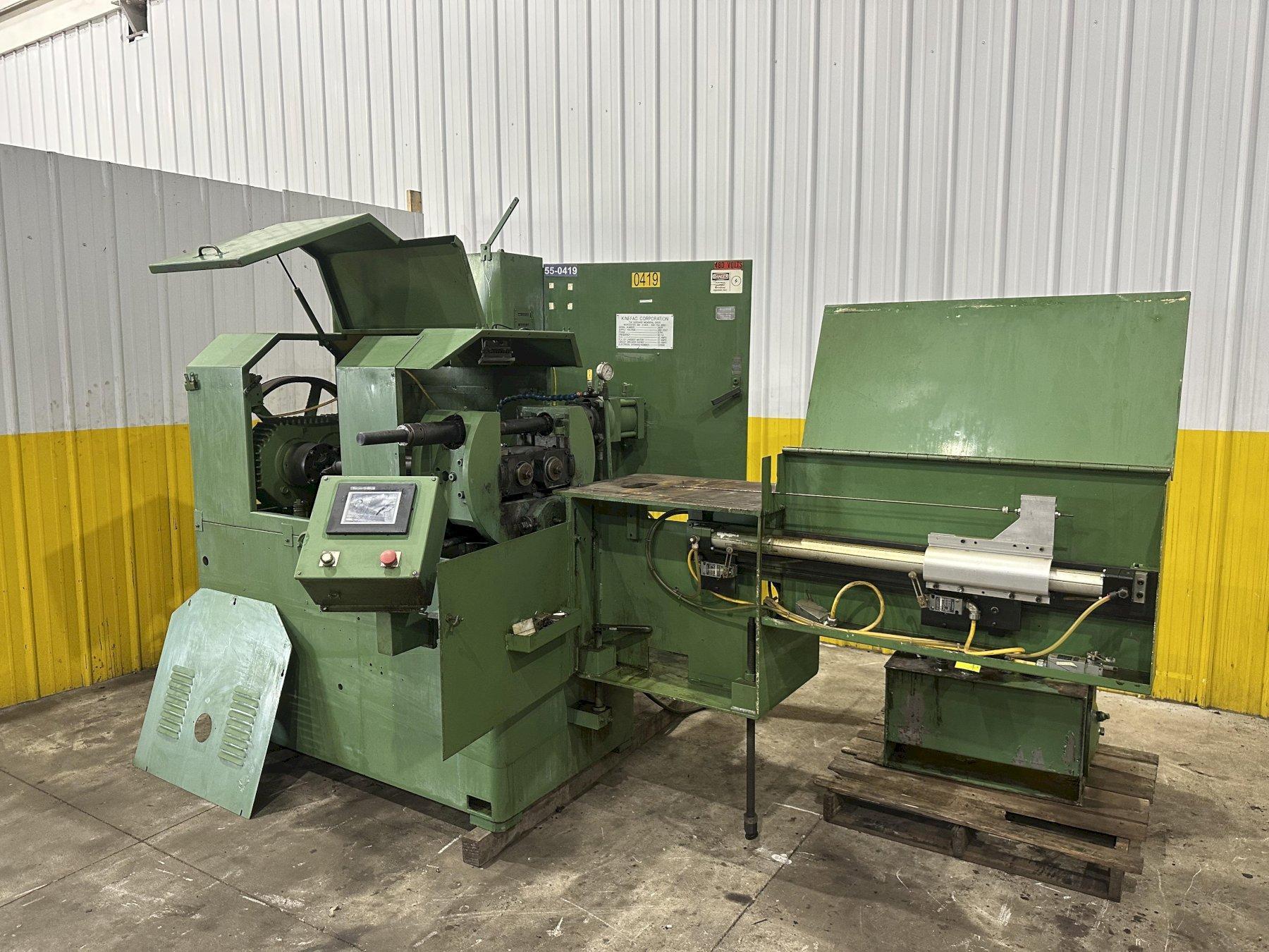 MODEL ........... MC-25-F The Kinefac MC-25-F is a 2-die cylindrical thread rolling machine with a ~2.5" maximum spindle diameter and 25 HP motor, designed for high-precision threading and form rolling of shafts and pins, with capacities including: a 2.5" maximum diameter for various components like threaded rod, ball blanks, and shallow forms; a 2.5" diameter for long thrufeed roll finishing; and a ~4.5" max die length.