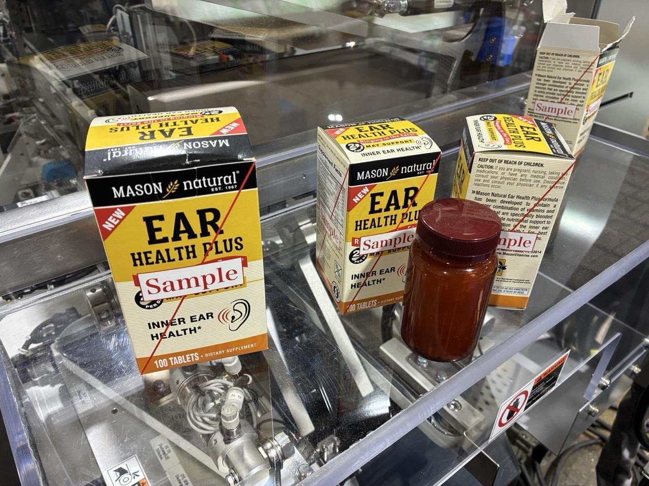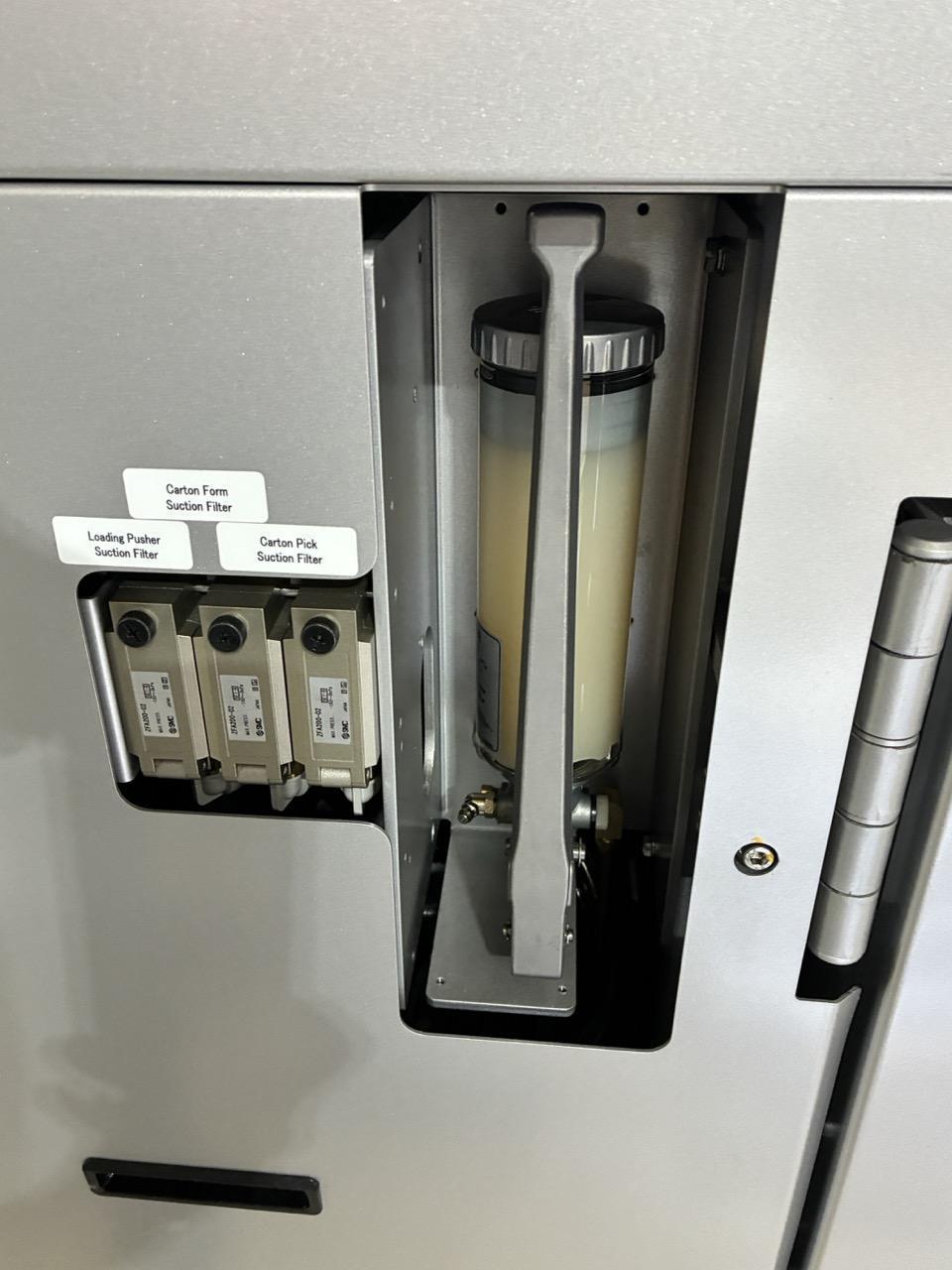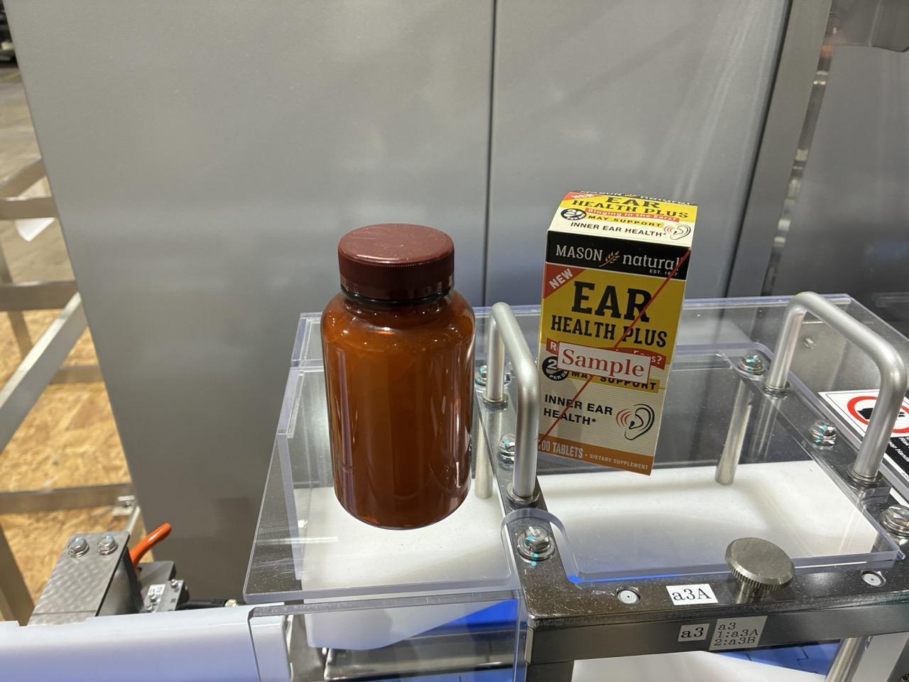All specifications are assumed to be correct but must be confirmed by the purchasing entity.,Presently set up to run pill bottles in cartons of the following sizes: 4.5″ x 2.25″ x 2.25″ and 5″ x 3″ x 3″. All specifications are assumed to be correct but must be confirmed by the purchasing entity.,– Intermittent motion Carton dimensions: – Length: 20-105mm (.79″ – 4.1″) – Width: 15-100mm (.59″ – 3.94″) – Height (depth): 60-180mm (2.36″ – 3.94″) All specifications are assumed to be correct but must be confirmed by the purchasing entity.,Power requirements: 208 VAC, 3 Ph, 60 Hz Total panel FLA: 40 A LRG Motor: 0.75 kW All specifications are assumed to be correct but must be confirmed by the purchasing entity.,Air requirements: 0.5MPa, 400 NL/min All specifications are assumed to be correct but must be confirmed by the purchasing entity.,Machine dimensions: 3,970 mm L x 1,630 mm W x 1,455 mm H (156″ L x 64″ W x 57″ H) All specifications are assumed to be correct but must be confirmed by the purchasing entity. |