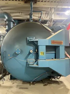 All specifications are assumed to be correct but must be confirmed by the purchasing entity.,Chamber & Heating Zone Chamber Type: Horizontal cylindrical vacuum furnace Internal Chamber Size: 48″ Diameter × 96″ Depth (est. ±2″) Hot Zone Volume: ~100 cu ft (2.8 m³) Heating Elements: Graphite rod, vertically suspended Heating Zones: Likely 3–5 zones (top, side, bottom) Element Configuration: Parallel banks w/ panel baffles Max Temperature: 2200°C – 2500°C (typical for GFS units) Temperature Uniformity: ±5°C – ±10°C (specs TBD without TUS) Thermal Insulation: Graphite tile, rigid pressed construction Hearth: Graphite slab platform on risers All specifications are assumed to be correct but must be confirmed by the purchasing entity.,Construction & Mechanical Furnace Shell: Welded carbon steel, circular endplate Door Style: Hinged clamshell or swing-latch design Seal: Graphite gasket + groove w/ vacuum flange Cooling: Water line inlets (seen on front/base) Feedthroughs: Thermocouples + electrical (rear piping) Base: Steel frame mount with floor-level piping All specifications are assumed to be correct but must be confirmed by the purchasing entity.,Utilities Electrical Input: 480V / 3Ph / 100–150A (estimated) Power Rating: 150–250 kW (typical for this size) Atmosphere Control: Vacuum or inert (argon/nitrogen) Vacuum System: Not shown – assumed missing Controller: Not visible – standard GFS uses Eurotherm or PLC Chiller Requirement: External closed-loop recommended All specifications are assumed to be correct but must be confirmed by the purchasing entity.,Estimated Performance Cycle Duration: 2–6 hours (application dependent) Heat-Up Rate: 5–15°C/min typical for graphite systems Typical Applications: Graphitization, sintering, carbonization Max Load Weight: ~3000–5000 lb (with uniform load spread) All specifications are assumed to be correct but must be confirmed by the purchasing entity. |