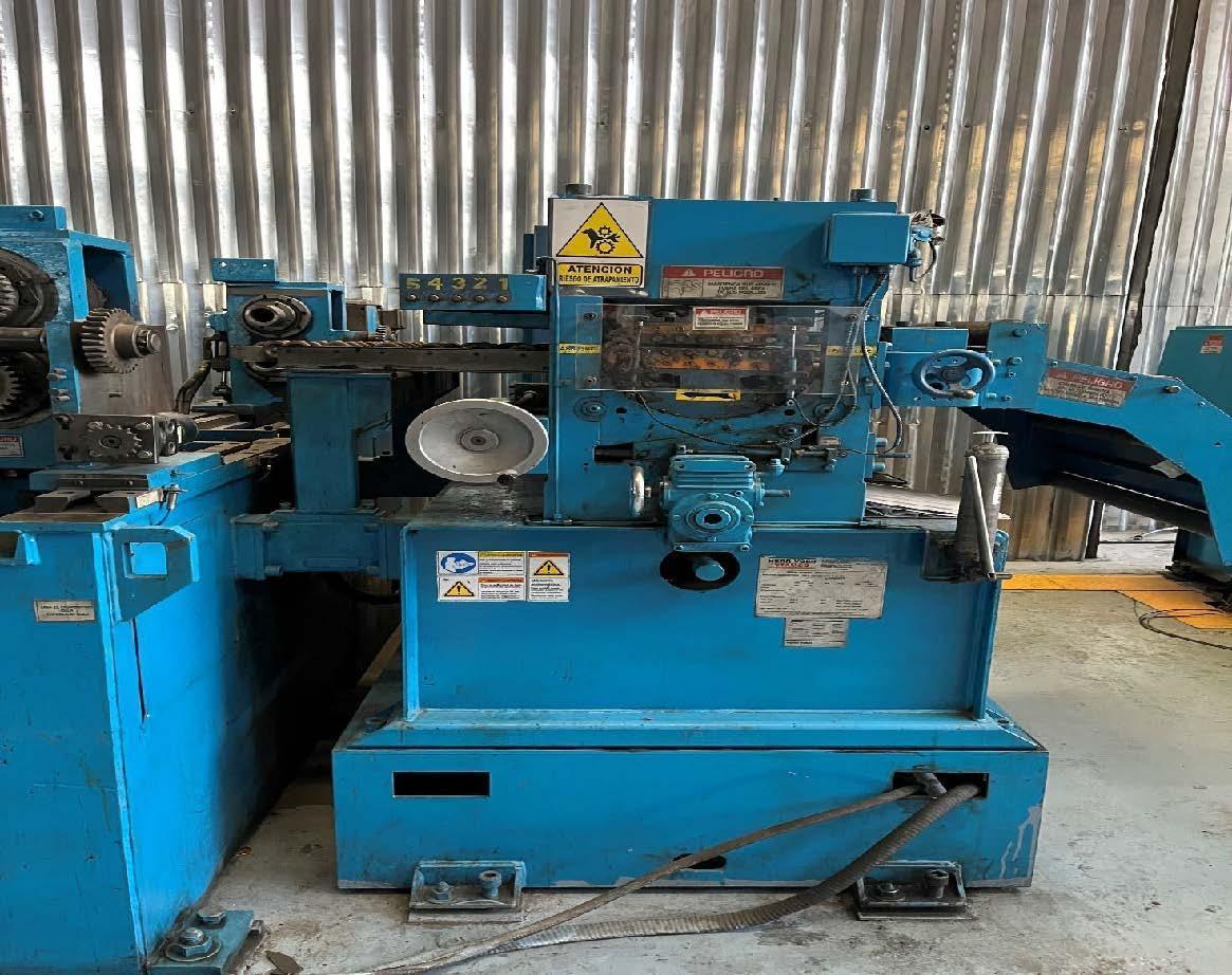 Stock # 14534 Manufacturer: COE PRESS EQUIPMENT USA • Year:2005 • Model: 40958 • Technical Specifications: • Width min-max: 264 – 1067 mm. • Thickness min-max: 0.2 – 0.81 mm. • Sheets dimensions: Min: 264 x 254 mm. – Max 1,067 x 2438 mm. • Line Speed 120 mpm max • Direction: Right to Left • Herr Voss presicion leveller 17 workrolls Diameter 1.156” • 7 Backup rolls flights & 5 Adjustable Backuo rolls • Yield Max 32,000 psi. • 11.18 Kw Motor drive • Uncoiler Data: • Coil ID 508 - 600 mm. • Coil OD 1,829 mm. • Weight capacity 6,800 Kgs.. • 3.7 kw Motor Drive • Complete Controls, Electric & Hydraulics • Installed and Running **Temporary Specifications Subject to Revisions** **PRICE QUOTED AS IS WHERE IS SUBJECT TO PRIOR SALE** **ALL SPECIFICATIONS ARE SUBJECT TO VERIFICATION** |