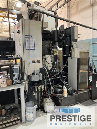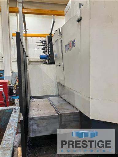 Spindle Diameter 4.33" Taper In Spindle #50 Milling Spindle Diameter 8.86" Vertical Head Travel, y 59.05" Table Cross Travel, x 78.74" Spindle Travel, z 19.69" Saddle Travel, w 57.08" Spindle Speeds 2-3000 RPM Rotary Table Size 55" x 63" Table Index 0.001 degrees Table Load Capacity 20,000 Lbs. Cutting Feed Rates .04-393 IPM Rapid Traverse 472.4 IPM Spindle Motor 40 HP / 30 HP Equipped With: Tosnuc 888 CNC Control Thru Spindle Coolant 55" X 63" Built in B-Axis Rotary Table 38 Station Automatic Tool Changer Chip Conveyor NOTE: Inspect In Plant Under Power! |