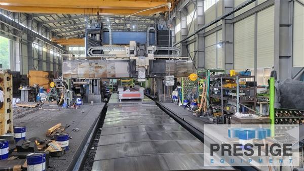 X-Axis Travel 413.38" Y-Axis Travel 196.85" Z-Axis Ram Travel...................... 39.37" 39.37" W-Axis Cross Rail Travel 98.42" Distance Between Columns 157.48" Maximum Spindle Speed 2000 RPM Table Size ........ 393.70" x 118.11" Table Load Capacity 110,000 Lbs. Taper BT 50 Main Motor 49.3 HP Equipped With: Fanuc 18iMB CNC Control 60 Station Automatic Tool Changer Thru Spindle Coolant 90 Degree Angle Head Extension Head Automatic Attachment Changer |