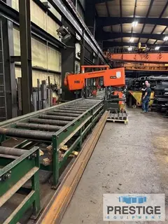 Maximum Cutting Capacity (Squares) 20.5" Maximum Cutting Capacity (Rounds) 22" Maximum Cutting Capacit (Rectangle) 20.5" x 30" Saw Blade 2" x 21'10" x 0.063" Cutting Speeds 42-312 FPM Blade Motor (380 Volts) 10 HP Floor Space 132" x 56" x 94" Shipping Weight (Saw Only) 5,620 Lbs. Equipped With: PLC Control Hydraulic Material Clamping Hydraulic Vertical Bundle Clamp Adjustable Clamp Pressure Coolant 30' Infeed/Outfeed Conveyor |