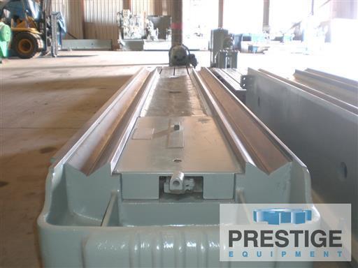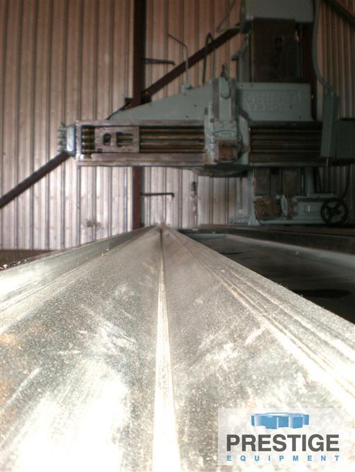 Area of Table, Working 36" x 324" Area of Table, Overall 36" x 350" Maximum Table Stroke................... 324" 324" Maximum Under Rail..................... 38" 38" Maximum Planing Width.................. 36" 36" Vertical Travel of Rail Head Slide..... 15" 15" Vertical Travel of Side Head........... 12" 12" All Heads Swivel (left or right)....... 45° 45° Equipped With: Cast Iron Vee ways for table 2 Rail Heads, (1 complete w/clapper box, 1 missing parts) 1 Side Head w/clapper box Auto Recirculating Lube System Power Feeds and Rapid Traverse on all Heads Operator's Pendant Control Electrics: All G.E. Drive System 50 HP Motor Generator Set 25 HP D.C. Motor (direct) 220/440VAC / 3 Phase / 60 Hz / 60/120 AMP 1765 RPM / 107/240V / 88/212 AMP / 250-1200 RPM Dimensions: Machine Height, w/out Pendant 10' 4" Width, w/out drive 120" Length, installed 56' 6" Length, shipping 29' 2" Estimated Weight 125,000 lbs |