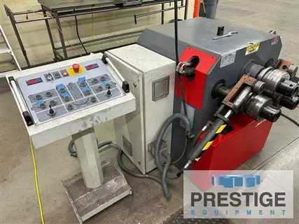 Roll Diameter 7" Turning Speed 17 FPM Angle Leg - Out 2" x 2" x 3/8" Tubing - Square........................ 2" x 2" x 1/8" 2" x 2" x 1/8" Tubing - Rectangular 3" x 1.5" x 1/4" Solid - Square 1.5" x 1.5" Flat - Along Edge 2.75" x .75" Motor 3 + 2 HP Dimensions 46" x 39" x 46" Approx. Weight 2,627 Lbs Equipped With: Universal Hardened & Ground Rolls Side Support Portable Control Panel Vertical/Horizontal Orientation NOTE: Inspect in Plant Under Power |