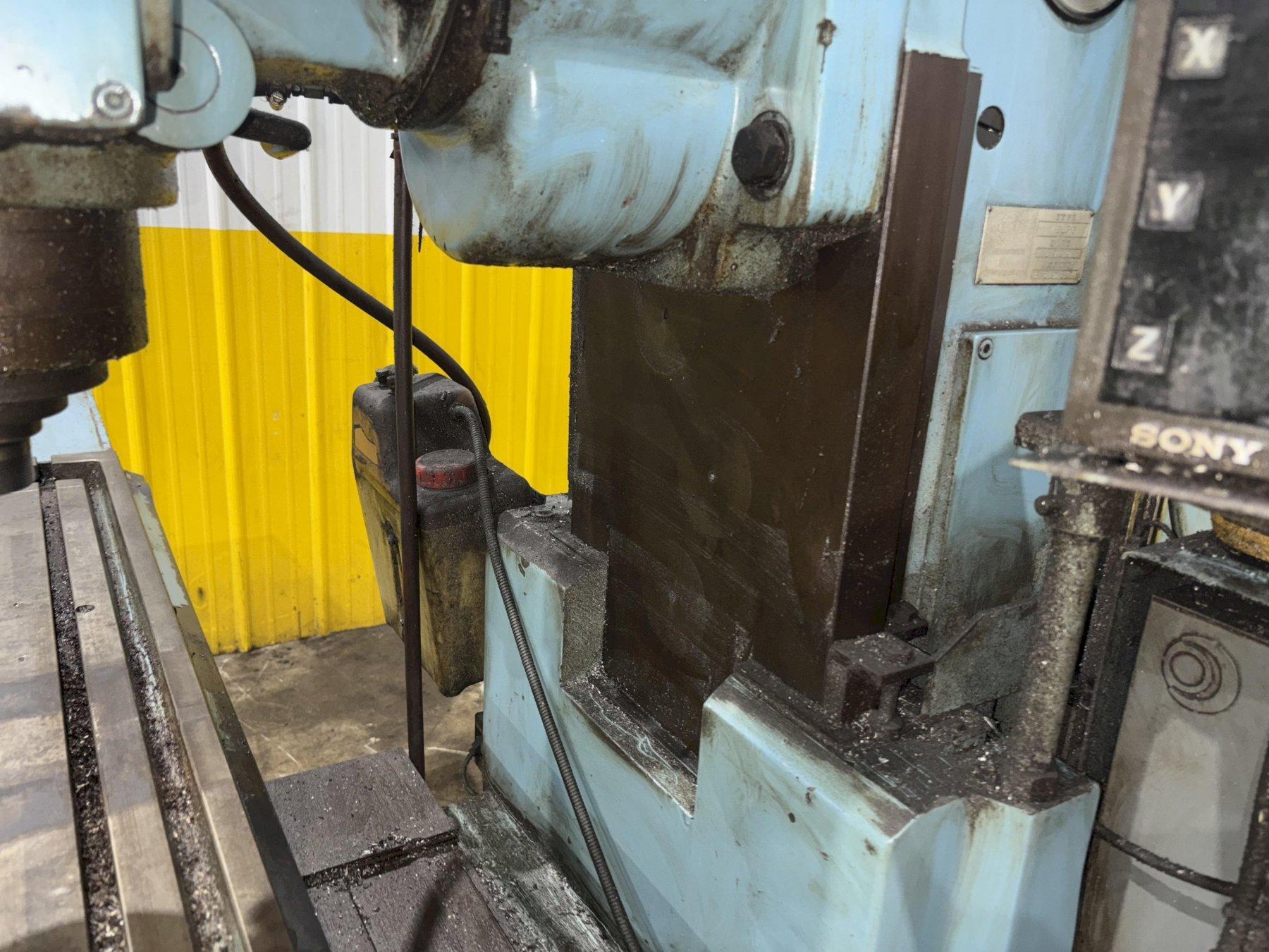 YEAR ............................ 1989 MODEL ........................... ME-35 UNIVERSAL HEAD .................. YES W/ ROTATION TABLE ........................... 13" X 57" (330 X 1450 MM) TABLE TRAVEL .................... 40" (1000 MM) CROSS TRAVEL .................... 13.8" (350 MM) SPINDLE SPEEDS .................. 40 TO 1540 RPM Taper ........................... #50 DIGITAL READ OUT ................ SONY 2 AXIS Spindle motor ................... 5 KW |