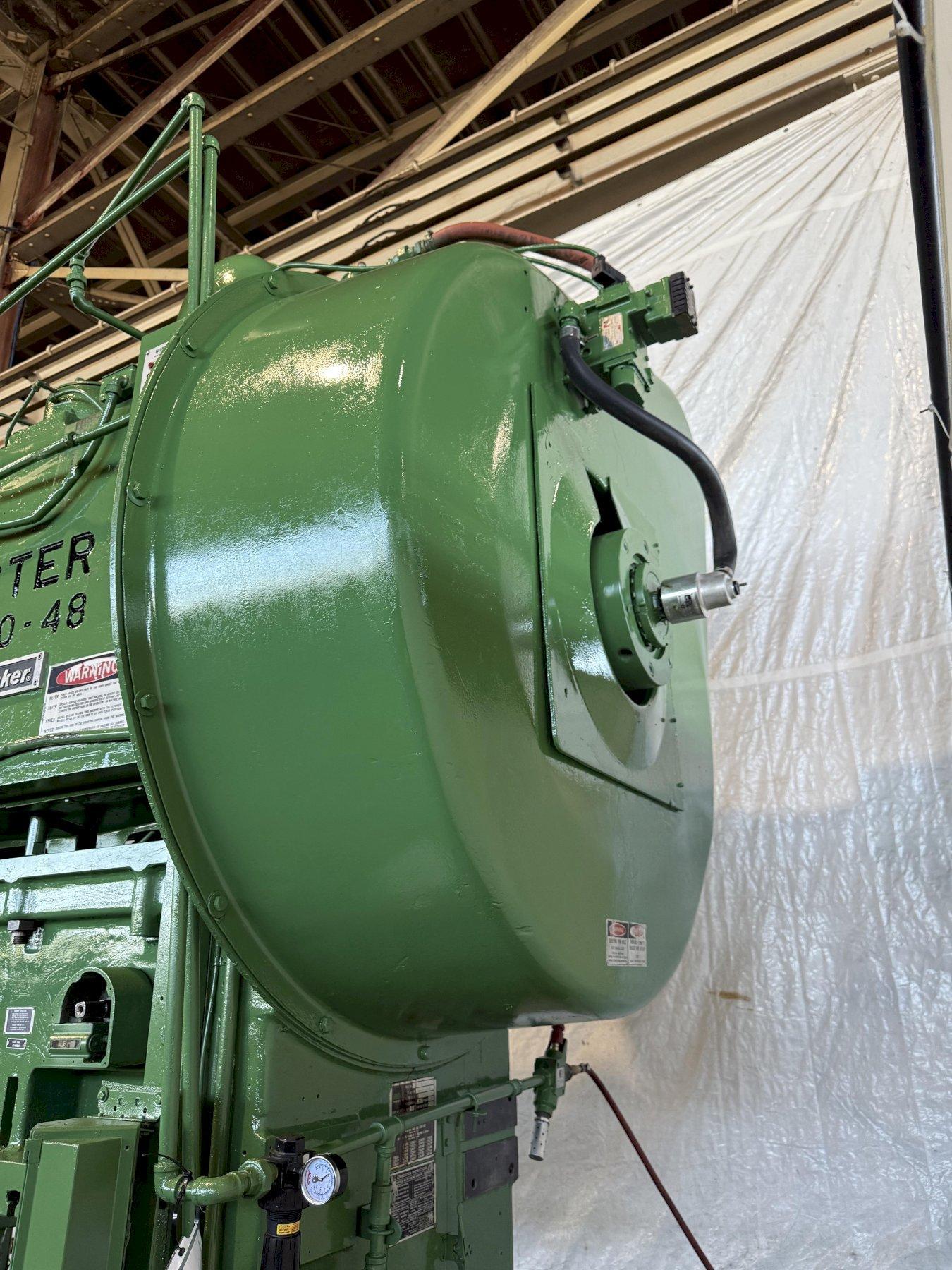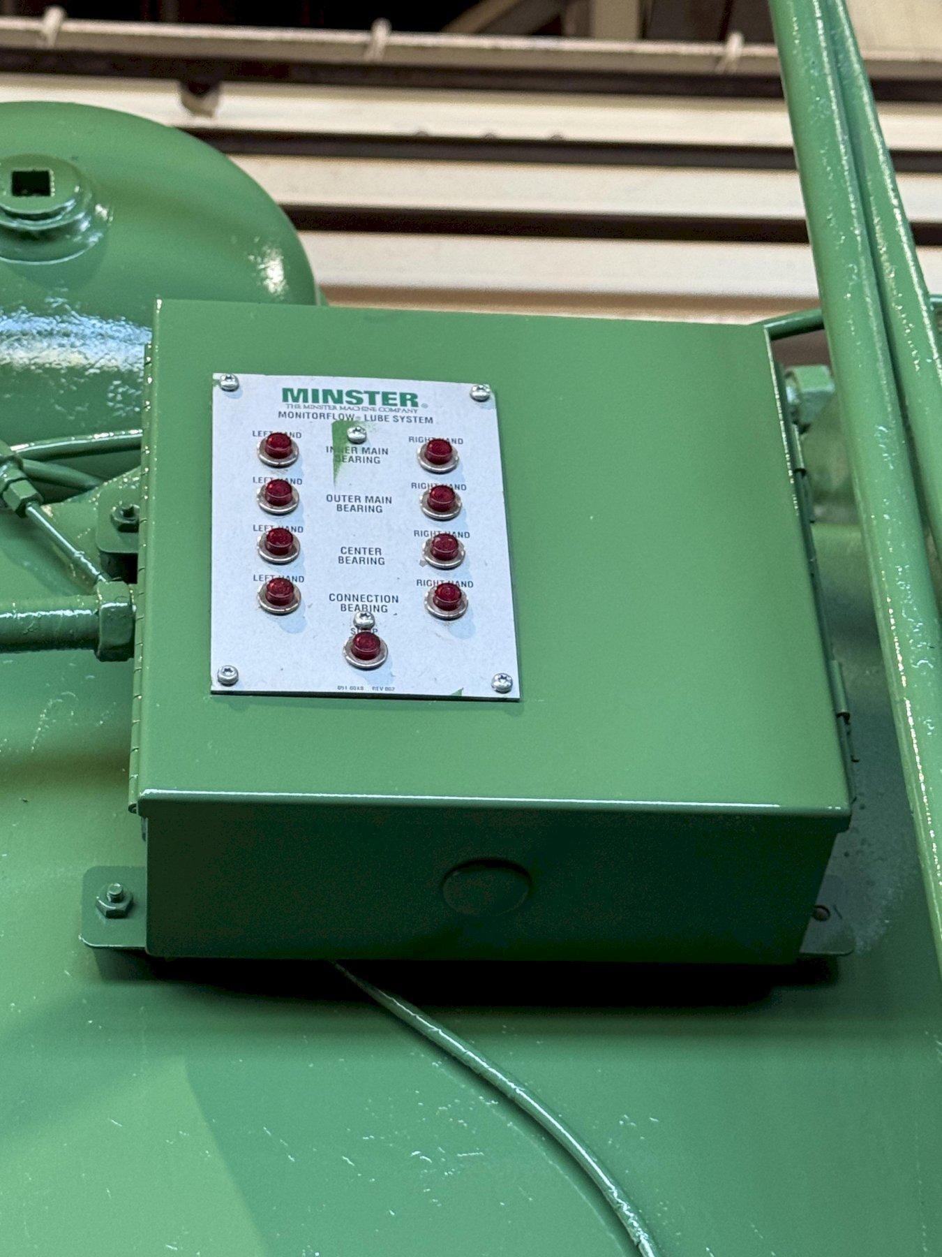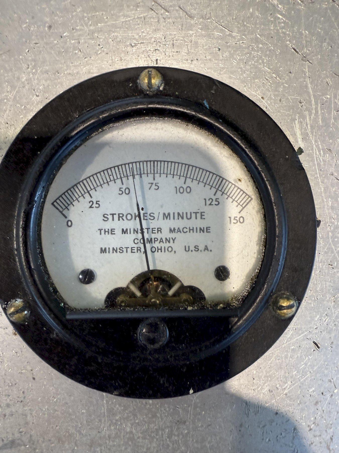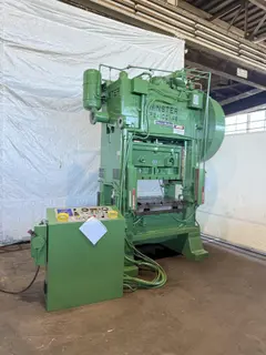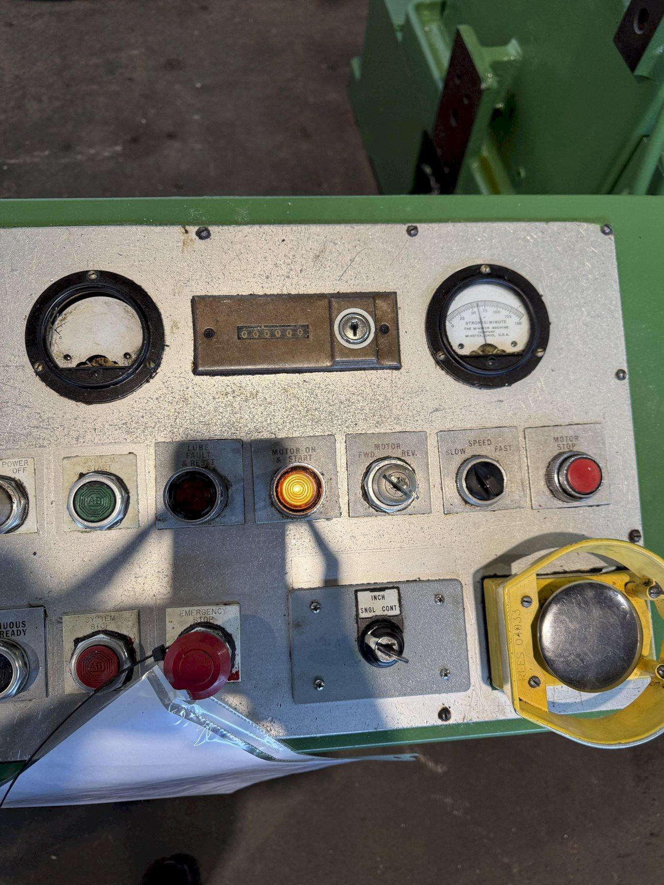 MODEL...............: P2-100-48 TONNAGE.............: 100 STROKE LENGTH.......: 4" SLIDE ADJUSTMENT....: 4" SHUT HEIGHT.........: 15" SPM.................: 80-160 VARIABLE CLUTCH AIR PRESSURE.: 60 LBS. BED SIZE............: 48" X 31" T SLOTTED RAM.......: YES T SLOTTED BOLSTER...: YES MINSTER CLUTCH......: YES VOLTAGE.............: 240 EQUIPPED WITH: WINTRISS SMARTPAC2 PRESS AUTOMATION SYSTEM COMPLETE AND FUNCTIONING LIGHT CURTAINS VIBRO DYNAMIC ISOLATION PADS |