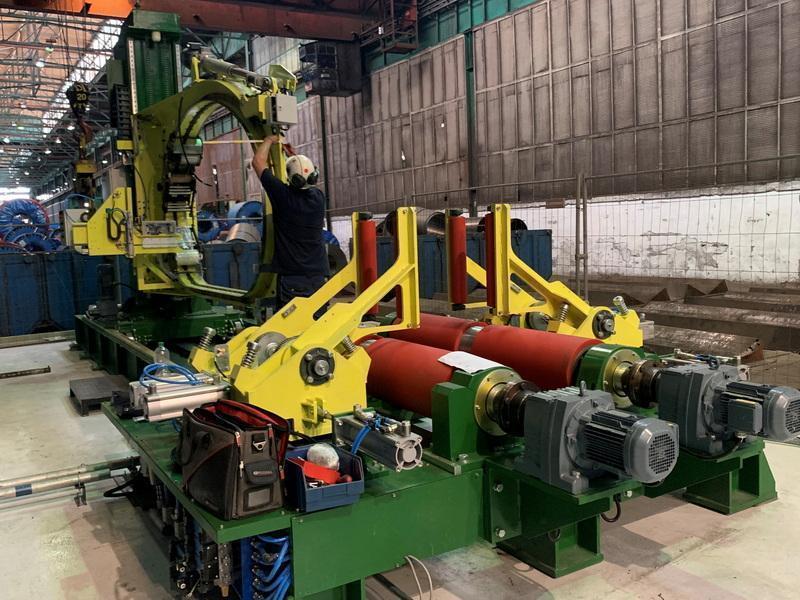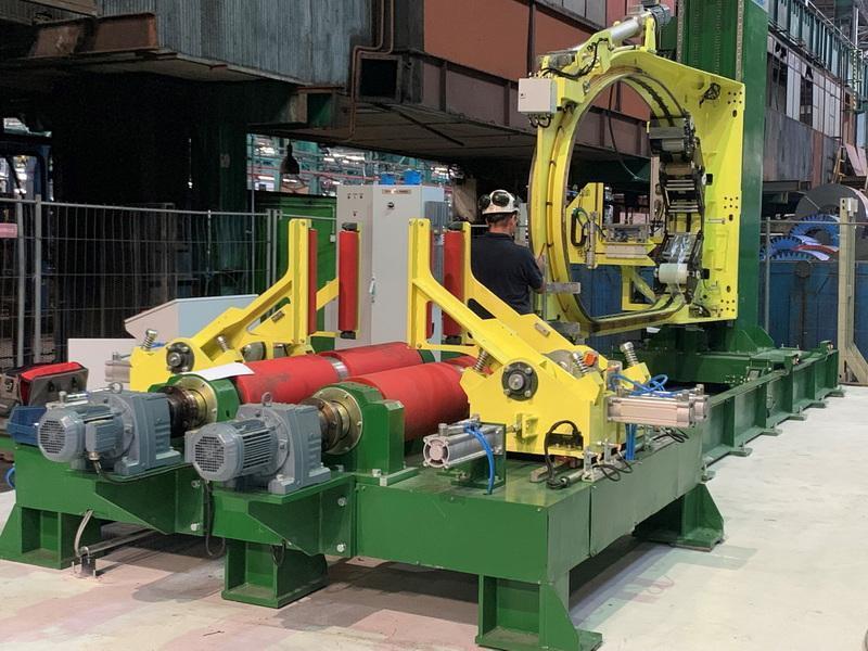 Transport: Infeed of coil by existing crane with C-Hook centered on cradle rollers