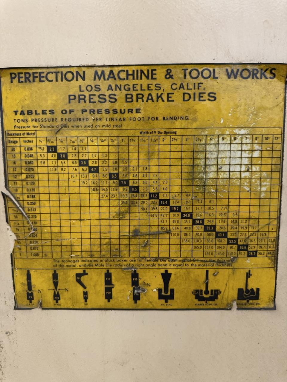 Bending Capacity: 10 Gauge Mild Steel Up To 10′; 3/16″ Mild Steel Up To 8′; 1/4″ Mild Steel Up To 5′ 6″; 5/16″ Mild Steel Up To 4′ 6″