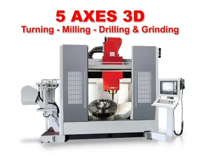 When used for milling, grinding, drilling, ... > machining center: - X-axis: 800 mm - Y-axis: 900 mm - Z-axis: 600 mm - A-axis: -30° / 110° - C-axis: continuous - maximum weight of the workpiece: 700 kg - 55/40 kW on spindle - max. torque on the spindle: 22 Nm - max 40,000 rpm - tool taper for milling: HSK-E40 - 150-position tool changer with 126 tool positions for milling, grinding, drilling