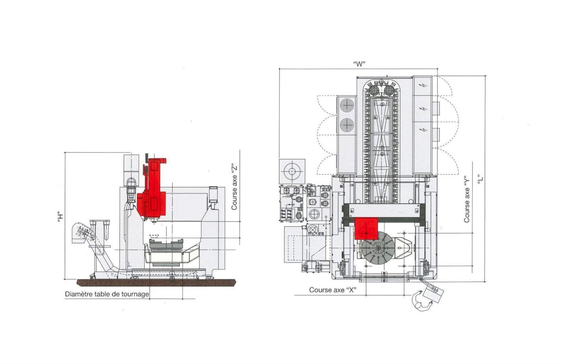List of options mounted on the machine: 1 - 40,000 rpm high-speed spindle 2 - table dia 700 mm with hydraulic clamping 3-150-position tool changer 4 - chip conveyor belt 5 - cooling system with recovery 6 - coolant temperature control 7 - high pressure cooling (40 to 70 bar) by spindle 8 - smoke extraction system 9 - chip collection box 10 - Presetting system and tool integrity: laser and mechanical probe for measuring tools 11 - Renishaw probe
