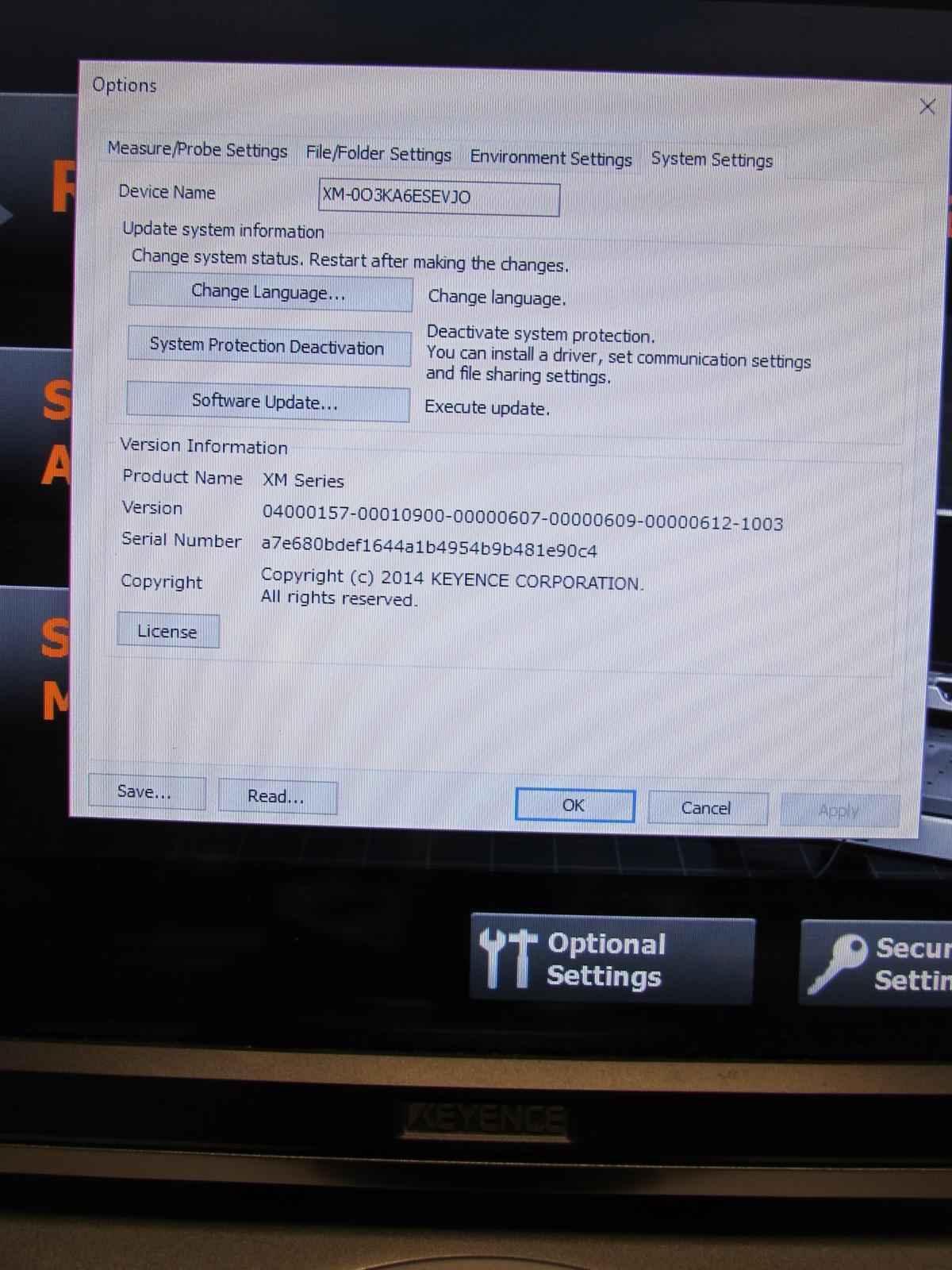 Control: Keyence Computer Control and Software Software: Keyence XM Series Software Measure Range: 600mm × 300mm × 200mm (23.62" × 11.81" × 7.87") Minimum Display Unit Distance: 1 um Minimum Display Unit Angle: 0.0001 degrees Equipped With: Movable Stage, XM-P1000 Handheld Probe, Software, XM-1600 Handheld Controller, Manuals Electrics: 110 Volt, Single Phase |