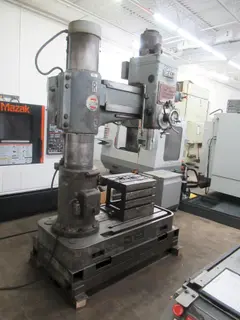 Column Diameter: 11" Arm Length: 42" Max Spindle Center to Column: 41-5/8" Min Spindle to Column: 10-3/4" Quilll Travel: 12" Max Spndle to Base: 48-3/4" Min Spindle To Base: 13-5/8" Spindle Speeds: (12) 30 to 1440 RPM Spindle Feed Rates: (4) .004 to .021 IPR Spindle Taper: #4MT Clamping Style: Power Base Dimensions: 30 1/2" x 47 1/4" Box Table Dimensions: 18" x 20.5" x 16.5" Box Table Spindle Drive: 3HP Equipped With: Power Elevation, Power Clamping, Box Table |