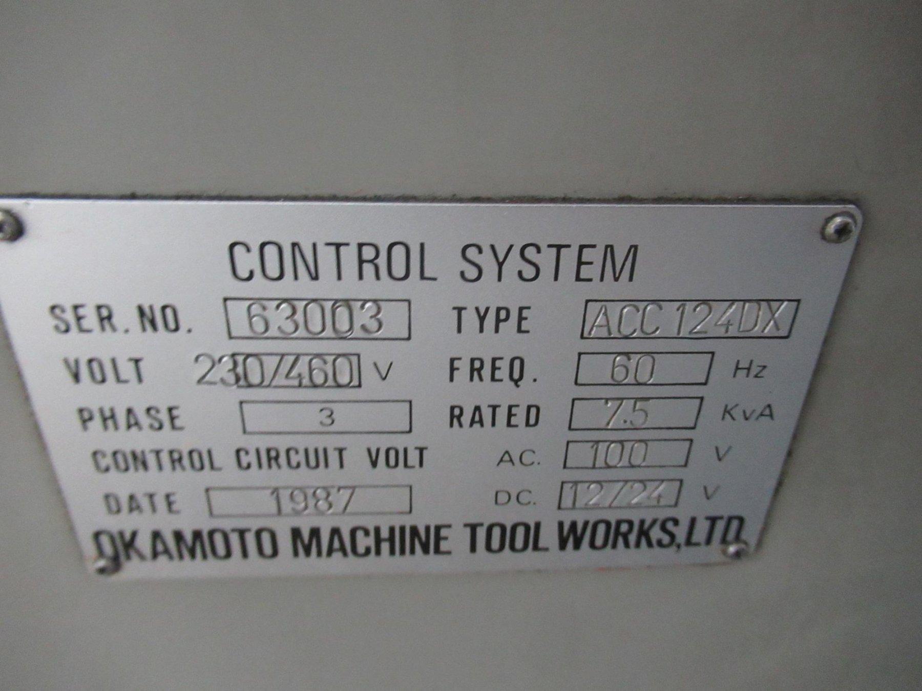 Max Chuck Size: 12" x 24" Auto Longitudinal Feed Rate: 1 - 82 FPM Max Distance Spindle / Wheel to Table: .9" - 12.7" Max Wheel Size : 14" Diameter x 1.5" Auto Wheelhead Downfeed Increments: .00005 - .0015" Wheel Speed: 1,800 RPM Spindle Drive: 5 HP Max Table Load (Including Chuck): 924 Lbs. Equipped With: 12" x 24" Electromagnetic Chuck with Variable Control, 3-Axis Operation with Servo Incremental Downfeed, Digital Wheelhead Position Display, Manual Over-the-Wheel dresser. Coolant Tank & Pump with Magnetic Separator, Toolbox Electrics: 230/460V 3 Phase |
