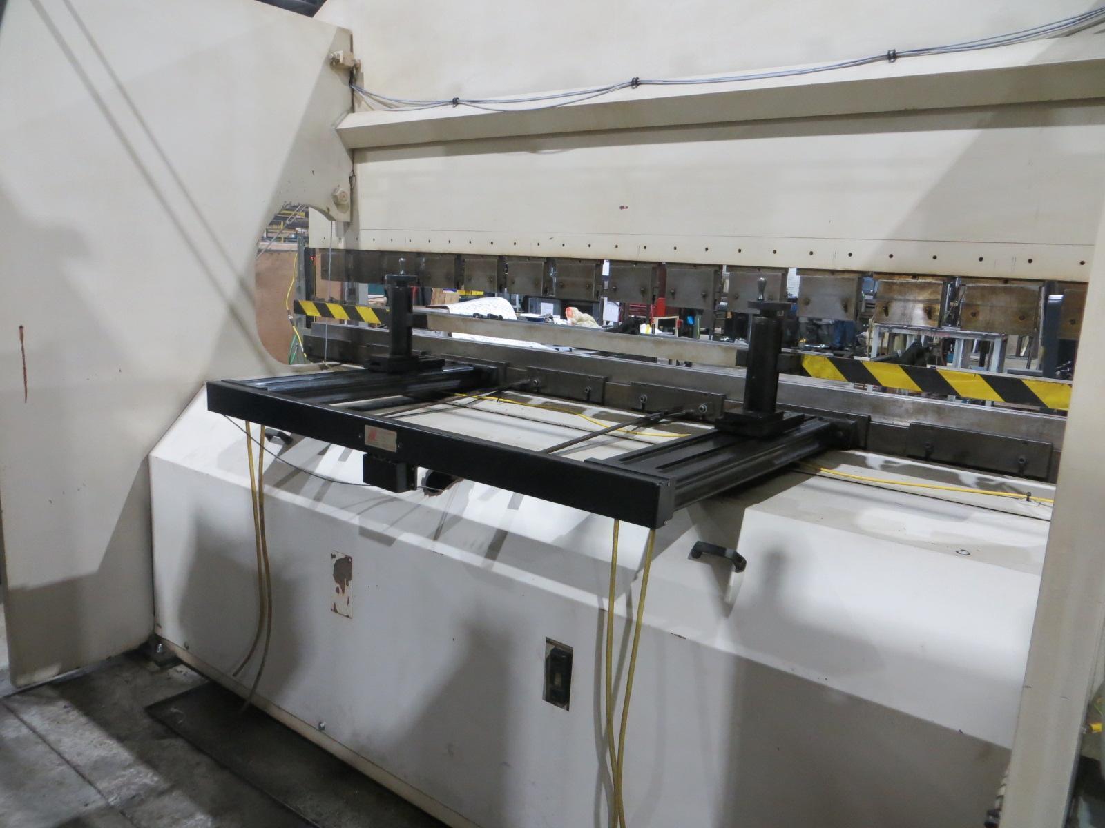 Control: Comp-U-Bend 61000 Tonnage Capacity: 110 Ton Bed and Ram Length: 120" Distance Between Housings: 105" Ram Approach Speed: 2.95 IPS Bending Speed(s): 0.35 IPS Ram Return Speed: 3.54 IPS Programmable Controlled Axes: 2-Axis (X & Y-Axes) Throat Depth: 17.7" Maximum Ram Stroke: 3.9" Max Open Height: 12.2" Closed Height: 8.27" Drive Motor: 10 HP Equipped With: Comp-U-Bend 61000 2-Axis Control, Single Axis Back Gauge, Banner EZ-Screen LS Light Curtains, Complete Set of Die Clamps for Ram, Lower Die Rail, Manual R-Axis Adjustment, Foot Treadle |