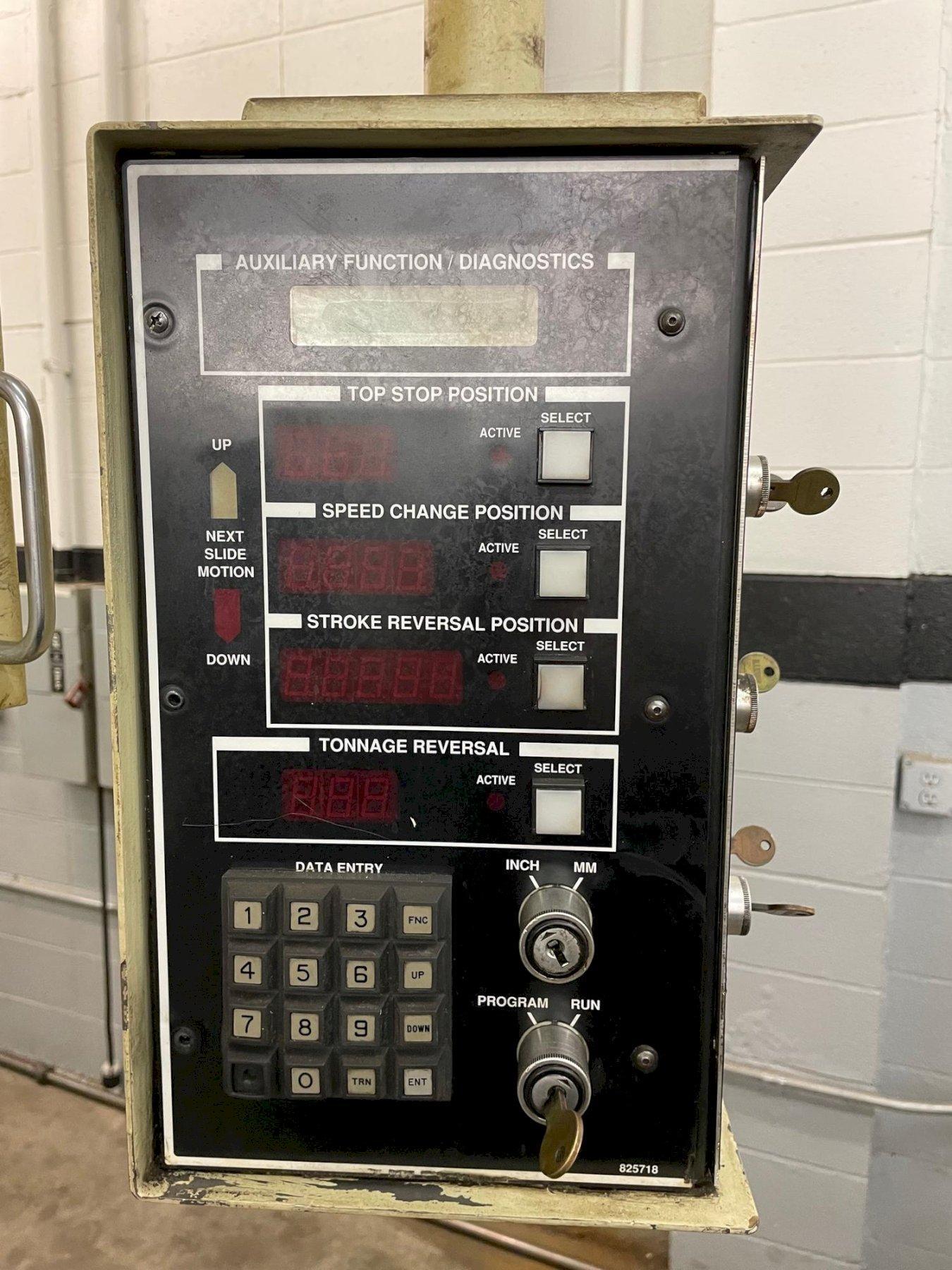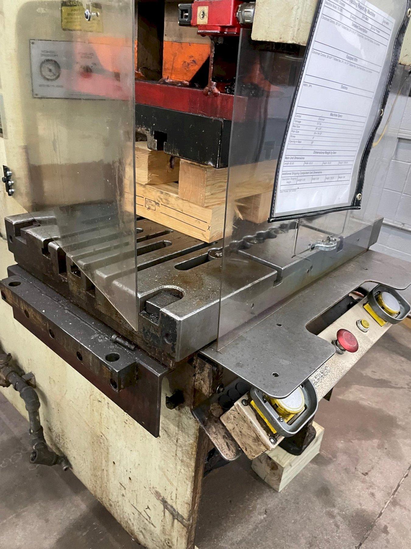 Control: Cincinnati Tonnage: 75 Tons Bed Size: 36" x 24" Ram Size: 24 x 19-1/2" Stroke: Adjustable 3/4" - 8" Opening in Back: 25" Ram Speeds: 61 IPM / 175 IPM / 606 IPM / 450 IPM Low Return / 695 IPM High Return Closed Die Height: 6.25" Open Die Height to Bolster: 14.25" Distance Bed to Floor: 39" Drive Motor: 20 HP Description: Cincinnati Control, 36"x24" T-Slotted Bolster, 24" x 19-1/2" T-Slotted Ram, Dual Palm Buttons, Die Cushion w Variable Controls, Knockouts, Reverse Control, Speed Selector, Inch/Single/Automatic Controls, Ram Stroke Position Controls with LED Displays, Inch/Metric, Tonnage and Reversal Controls, Power Clamps Equipped With: Cincinnati Control, 36"x24" T-Slotted Bolster, 24" x 19-1/2" T-Slotted Ram, Dual Palm Buttons, Die Cushion w Variable Controls, Knockouts, Reverse Control, Speed Selector, Inch/Single/Automatic Controls, Ram Stroke Position Controls with LED Displays, Inch/Metric, Tonnage and Reversal Controls, Power Clamps Electrics: 480V, 3Ph |
