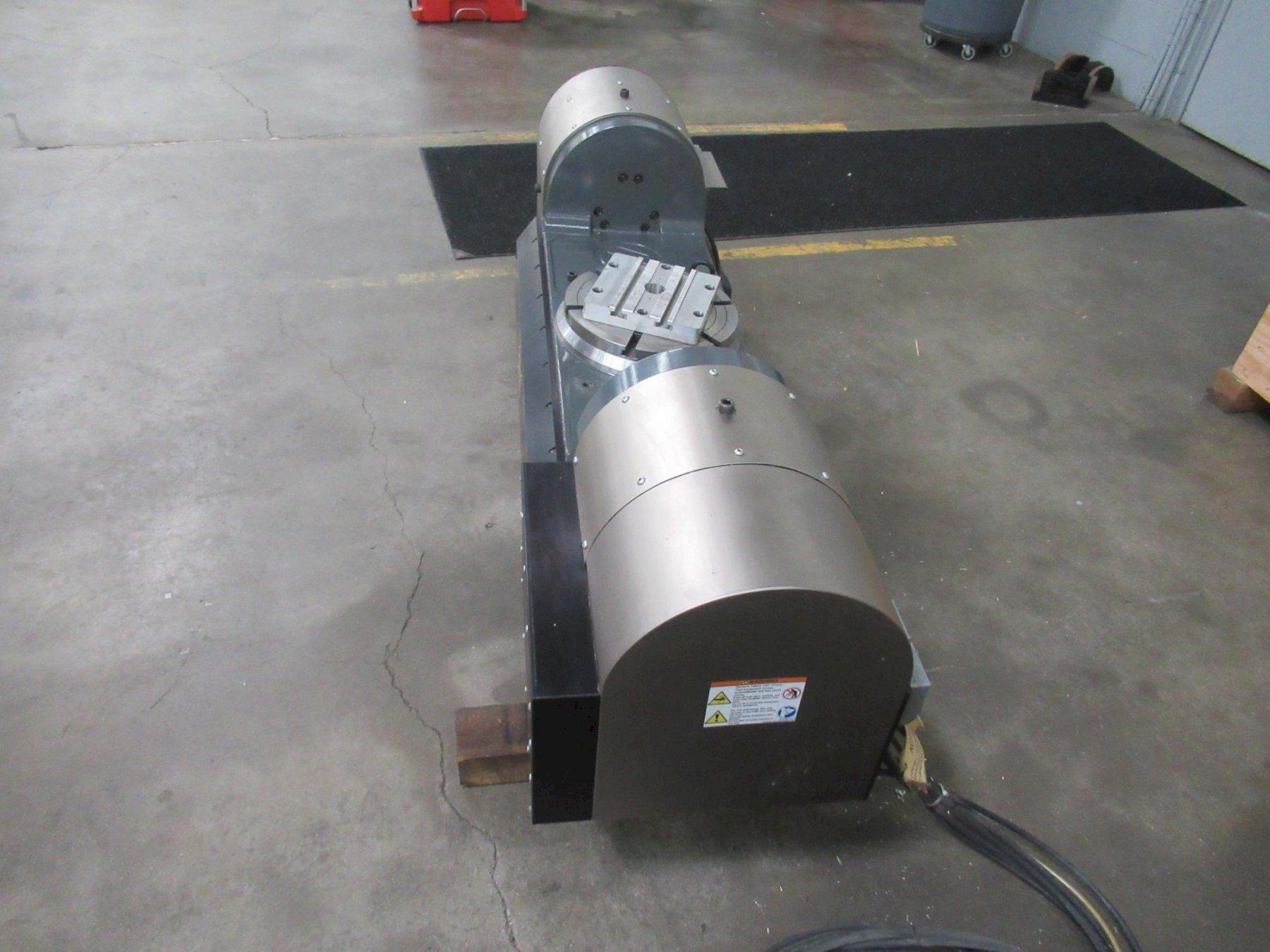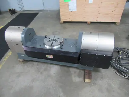 A Axis (Tilt) Max Speed: 50 °/sec A Axis (Tilt) Max Torque: 300 ft-lbf A Axis (Tilt) Gear Ratio: 1000 ft-lbf A Axis (Tilt) Center Height: 72:1 B Axis (Rotary) # of Heads / Platens: 1 B Axis (Rotary) Max Speed: 50 °/sec B Axis (Rotary) Max Torque: 300 ft-lbf B Axis (Rotary) Nose or Platen: Platen B Axis (Rotary) Gear Ratio: 72:1 Equipped With: Connectors and Cables |