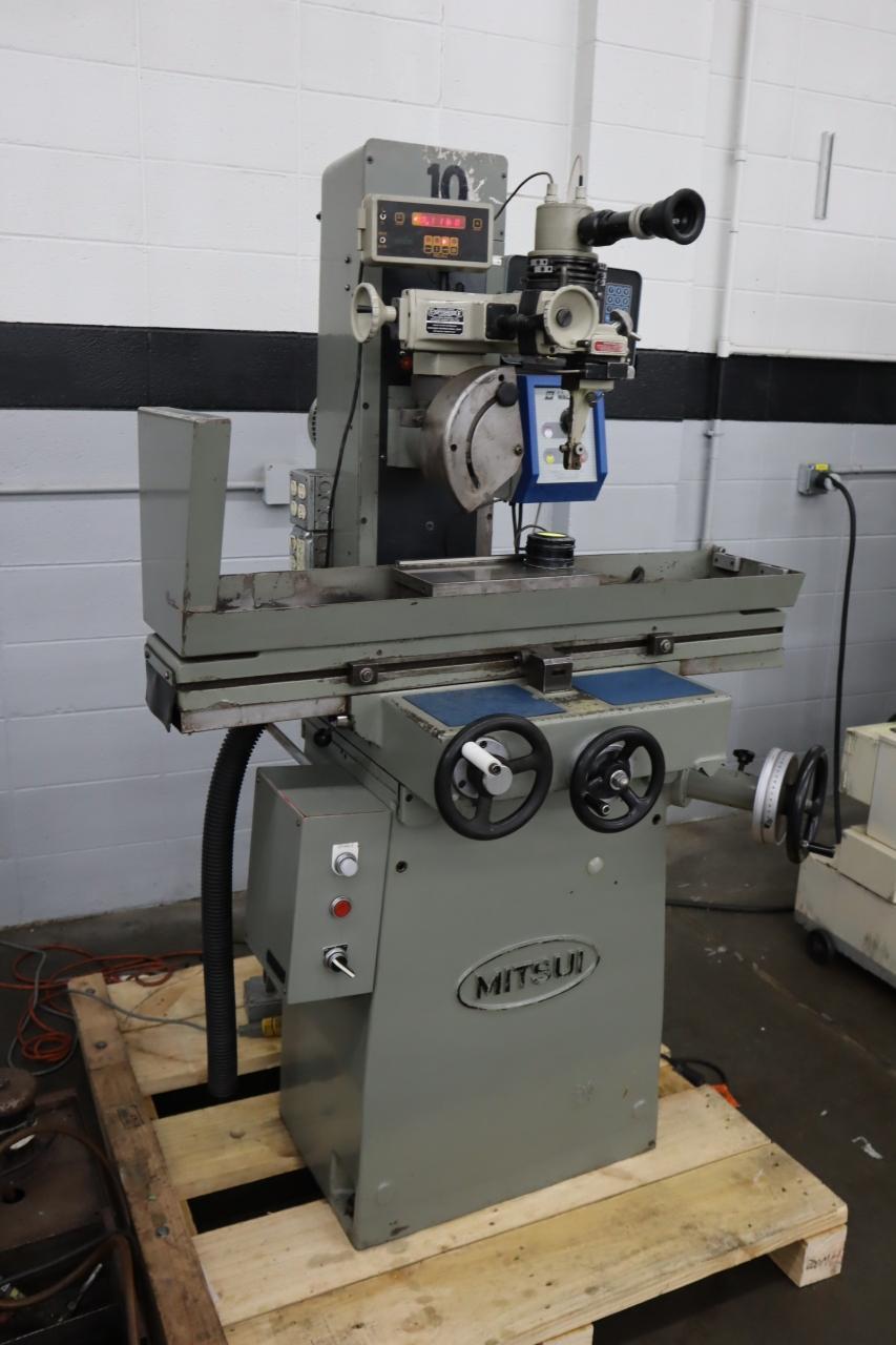 Chuck Size: 6" x 12" Table Size: 6" x 13.5" Max Carriage / Table Movement: 8" x 15" Max Height Spindle Center To Table: 18" Max Wheel Size: 8" x 3/4" x 1.25" Longitudinal Feed Rate: Hand Feed 4" Per Handwheel Rev. Cross Feed Movement Per Handwheel Revolution: .1" Per Rev / .001 Increments Wheelhead Feed Increments: Hand Feed .05" Per Rev. / .0001 Increments Wheelhead Rapid Feedrate: Optional Poer Vertical Feed: 17-1/3 IPM Spindle Speed: 3,470 RPM Spindle Drive: 1.3 HP Description: Find a reliable Mitsui High-Tech MGS-200MH Surface Grinder equipped with an Optidress E Wheel Dresser and Facstor at Machinesused.com. This precision surface grinder offers high-performance grinding for toolrooms and production environments, delivering exceptional accuracy and finish. Ideal for shops seeking dependable Mitsui engineering and enhanced dressing capability with Optidress technology. Equipped With: Acu-Rite III 1-Axis DRO on Cross Feed, Walker LBP 6"x12" Fine Line Electromagnetic Chuck with O.S. Walker Variable Chuck Control, OptiDress E Wheel Form Dresser with Factstor (s/n 711481), Coolant Tank & Pump Electrics: 200-220 3 phase. |