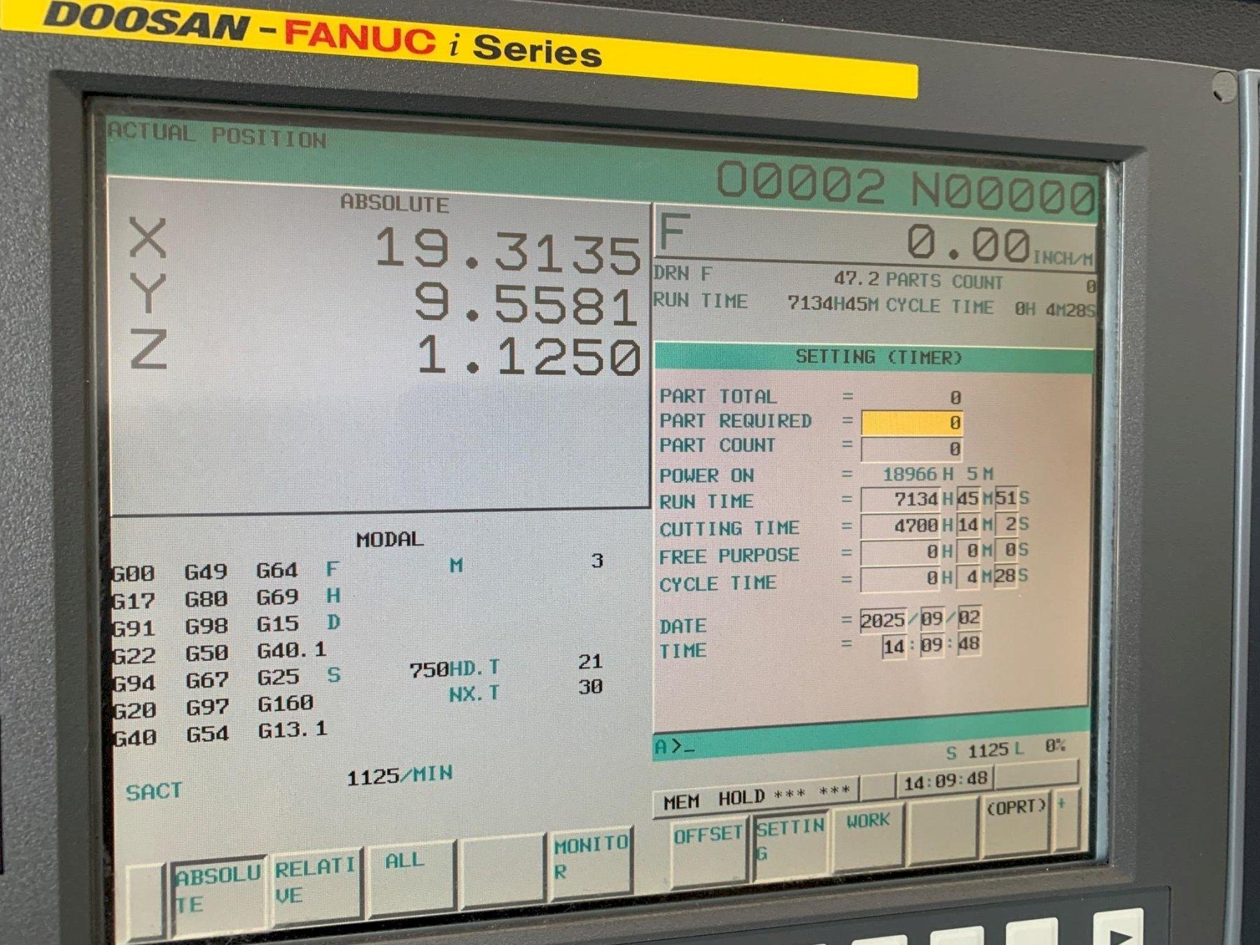 X 1,020 mm Y 540 mm Z 530 mm Power 1,115 kW RPM 8,000 RPM # ATC 30 Table-W 540 mm Table-L 1,200 mm # Axis 3 EQUIPPED WITH Renishaw Optical Receiver Chip Conveyor Manuals Buyer Is Responsible For Scheduling Transportation Of All Items, As Well As All Cost To Move It. We Can Provide You With Shipping And Rigging Quotes If You Need Help. Please Contact Us And We Will Assist You With Any Questions You May Have. All Items Are Are Sold "As Is, Where Is”. Specifications, Options, And Additional Accessories Are Quoted To The Best Of Our Knowledge And Are Subject To Buyer's Verification And Correction.