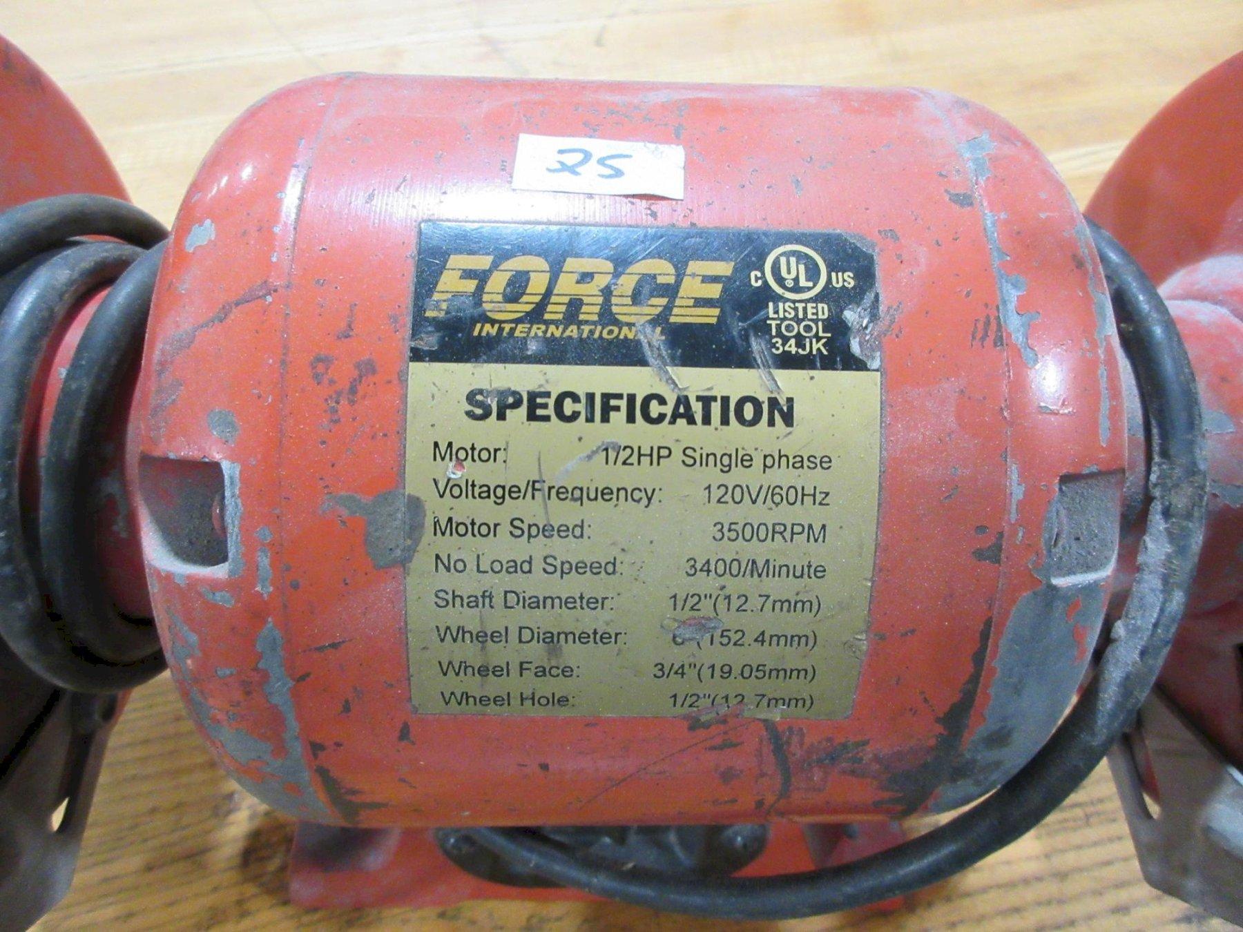Lot 323: Force International Double End 6" Bench Grinder, 1/2" Diameter Shaft