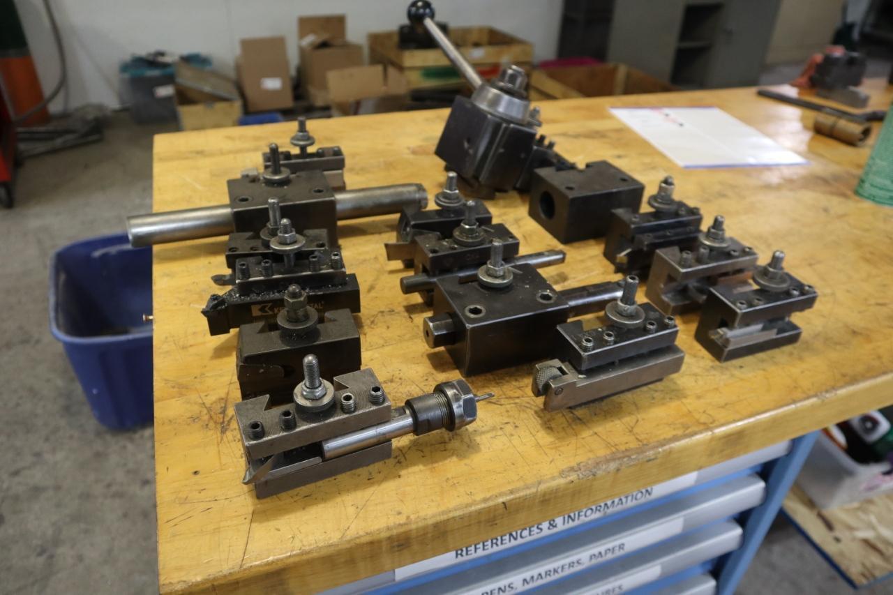 Lot 139: Aloris CXA Quick Change Tool Post with Various Tool Holders and More