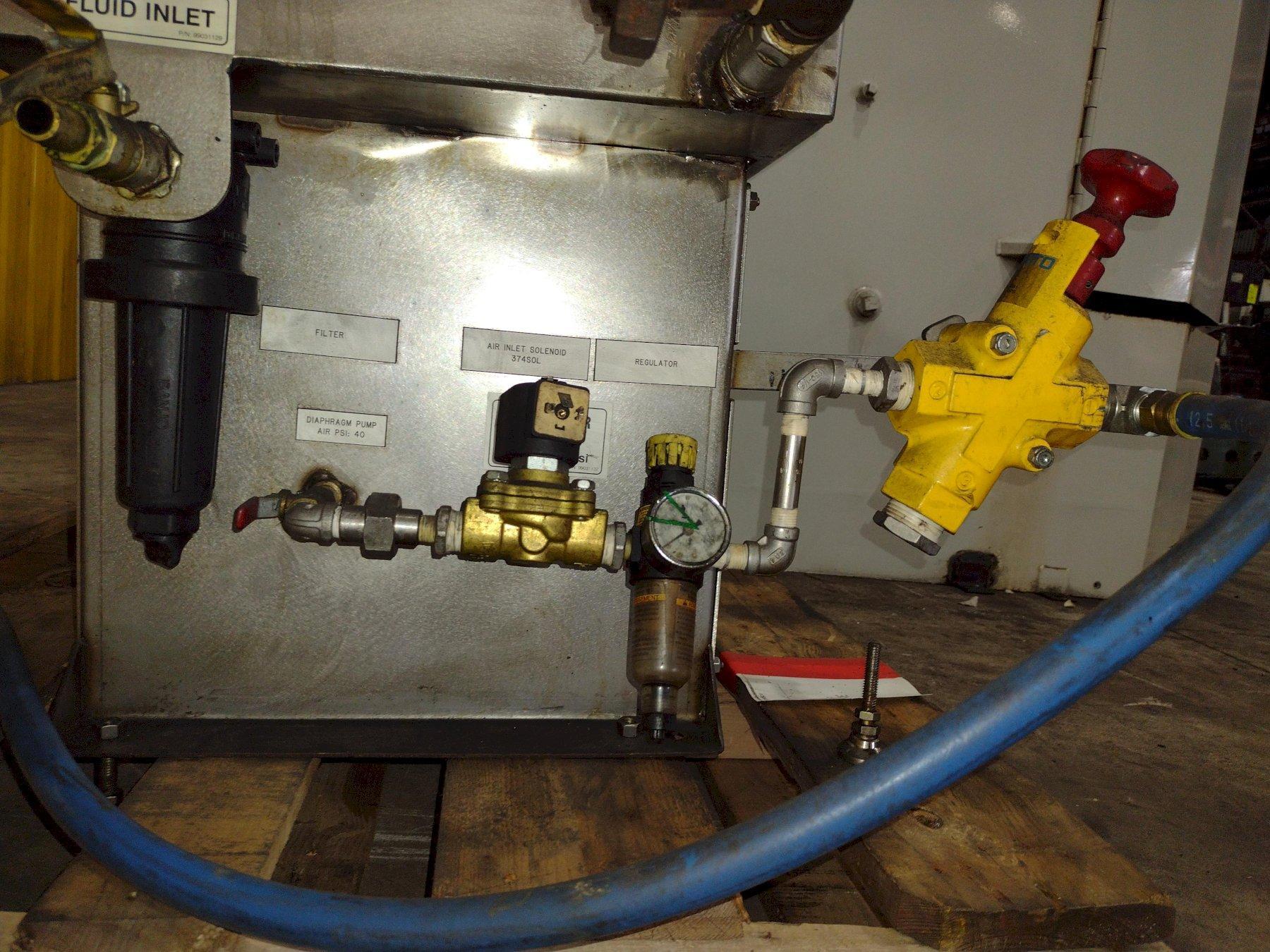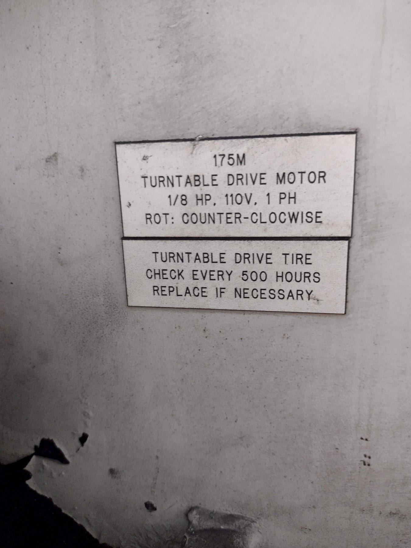 Model ..................... F4000-LXP Year New .................. 2008 Turntable Diameter ........ 40” Working Height ............ 60” Table Weight Capacity ..... 1,500 lbs. Swing Out Door ............ Yes Wash Temperature Readout .. Yes Cycle Timer ............... Yes Vertical Pump ............. 7.5 HP Pump Output ............... 150 GPM/60 PSI Tank Size ................. 140 Gallons Heat ...................... 18 kW Heat-up Time .............. 1.5 Hours |