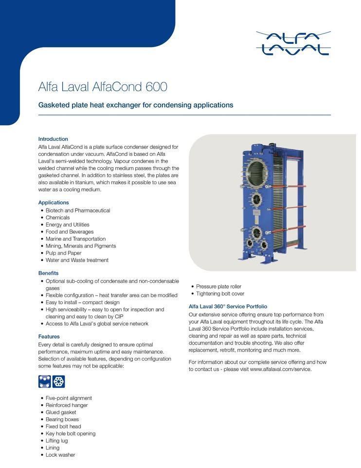 Alfa Laval Alfa Cond 600, Stainless Steel version in original crates, never used!