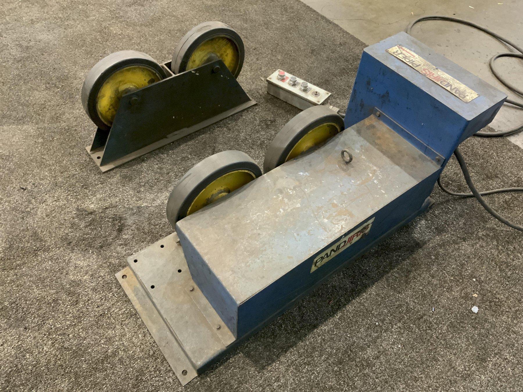 SERIAL DRIVE ROLLS ......................... 81-2188-6 SERIAL IDLER ROLLS ......................... 81-281-11 MODEL ...................................... PIPER 3ir CAPACITY 1 DRIVE 1 IDLER ................... 4000 LB TURNING CAPACITY ........................... 6000 LBS NUMBER OF DRIVES ........................... 1 NUMBER OF IDLERS ........................... 1 TANK DIAMETER .............................. 3-1/2" TO 40" MAXIMUM ROTATION SPEED (VARIABLE) .................. 2 TO 60 IPM RUBBER TIRE DIMENSION ...................... 12" X 2-1/2" PHASE ...................................... 1 VOLTAGE .................................... 110 CONTROL .................................... PENDANT |