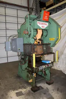 2.5" RAM ADJUSTMENT 13" SHUT HEIGHT 45-90 SPM VARIABLE 32" X 21" BED 21" X 16" RAM AIR CLUTCH AIR BRAKE PALM BUTTONS LIGHT CURTIANS 1988 72" X 84" X 125" T APROX. 12500 LBS APROX. |