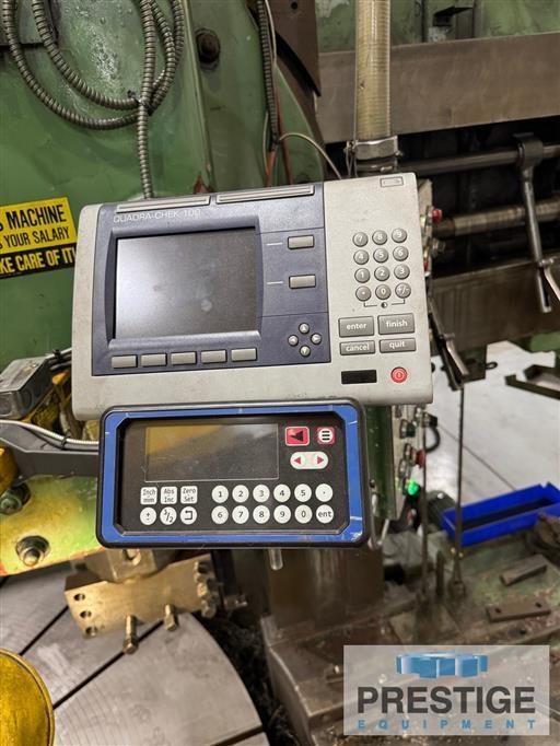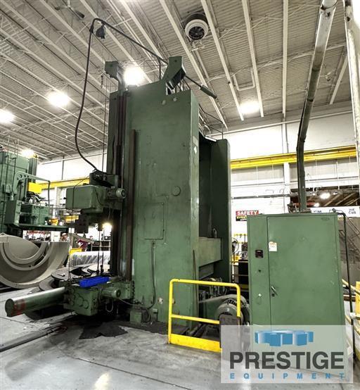 Specifications: Table Diameter 125.98" Maximum Turning Diameter 137.79" Maximum Height Under Rail 98.45" Ram Stroke 39.47" Ram Swivel +/- 30 Degrees Minimum Distance Between Rams 20" Table Speeds (18) .8-40 RPM Feeds (18) .0049-.2188 IPR Threading, Inch 1-11 TPI Threading, Metric 2-20 MM Table Load Capacity 55,000 Lbs Machine Weight 170,000 Lbs Floor Space L-R x F-B 259" x 245" Overall Height 304" Equipped With: Pendant Controls 2-Axis Quadra Check Digital Readouts 2-Swiveling Rams Right Hand Side Head 126" Face Plate Type Chuck with 4-Top Jaws Threading & Taper Turning 74 HP Main Motor Note: Left Ram is Not Operational |