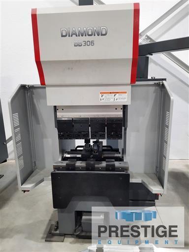 Maximum Tonnage Capacity 30 Ton Maximum Bending Length 24.8" Distance Between Housings 27.55" Stroke Length 5.9" Open Height 16.92" Approach Speed 224 IPM Bending Speed 47 IPM Return Speed 224 IPM Floor Space 87" L x 44" Wide x 95" High Weight of Brake 6,300 Lbs. Equipped With: Mitsubishi CNC Control with 22" Touch Screen 5-Axis High Speed Back Gauge Ballscrew Drive Mechanism Integrated Side Guards Foldable Front Support Table |
