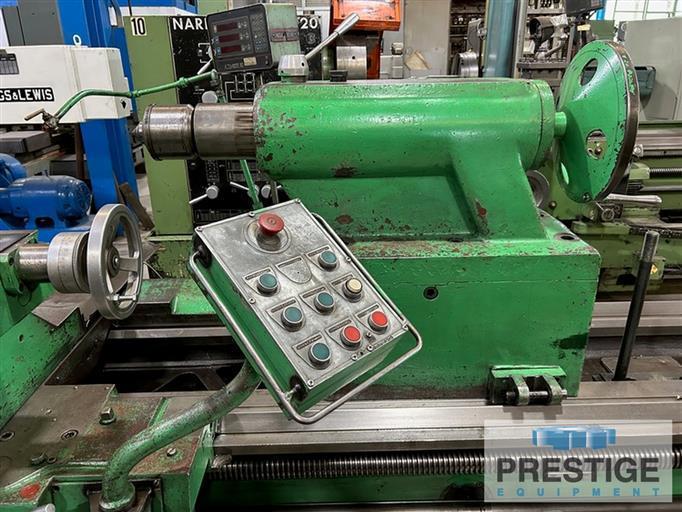Swing Over Bedways 53.14" Swing Over Over Carriage 39.37" Swing Over Bed Gap 62.99" Length of Gap 16.53" Spindle Bore 4.72" Distance Between Centers 236.22" Bed Width 25.98" Weight Capacity Between Centers 19,800 Lbs. Weight Capacity (One Steady Rest)...... 26,400 Lbs. 26,400 Lbs. Speeds (21 Ranges)..................... 5-500 RPM 5-500 RPM Spindle Motor 54 HP Equipped With: 39.5" 4-Jaw Chuck Inch/Metric Threading 6 Way Power Traverse 4 Way Tool Post Power Compound 27" Roller Type Steady rest |