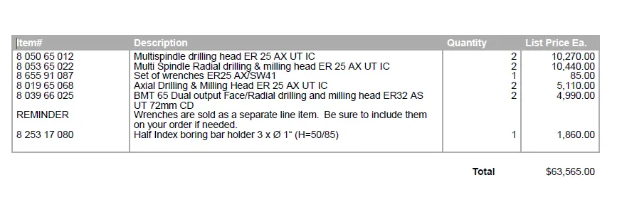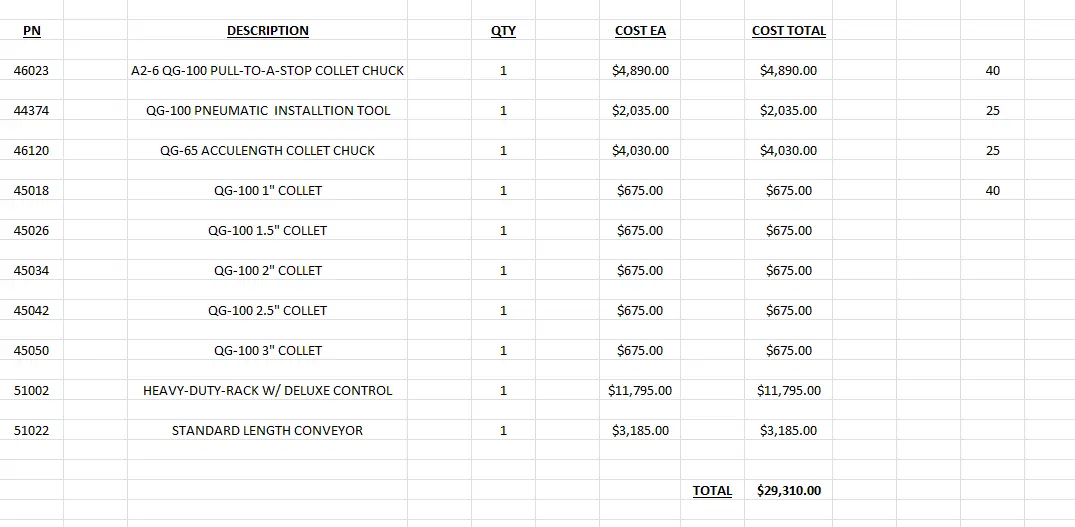 Haas Bar Feeder V2 Replacement Cost: $200k Optional Equipment:
