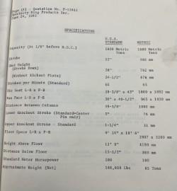 CAPACITY (AT 1/8" BEFORE B.D.C.) .. 1600 METRIC TONS 1600 METRIC TONS