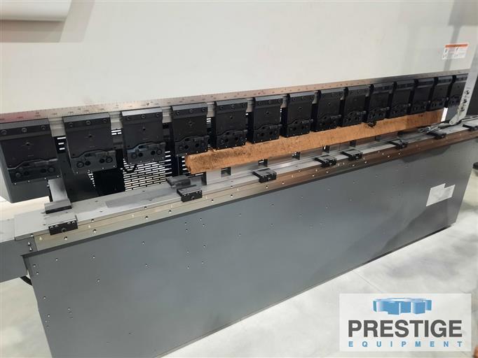 Maximum Tonnage Capacity 149 Ton Maximum Bending Length 122" Distance Between Housings 106" Stroke Length 9.84" Open Height 20.86" Approach Speed 472 IPM Bending Speed 23.6 IPM Return Speed 472 IPM Floor Space 186" L x 97" Wide x 118" High Weight of Brake 22,000 Lbs. Equipped With: Mitsubishi CNC Control with 22" Touch Screen 4-Axis High Speed Back Gauge Dual Drive Hybrid System Automatic Micro-Wedge Auto Crowning System |