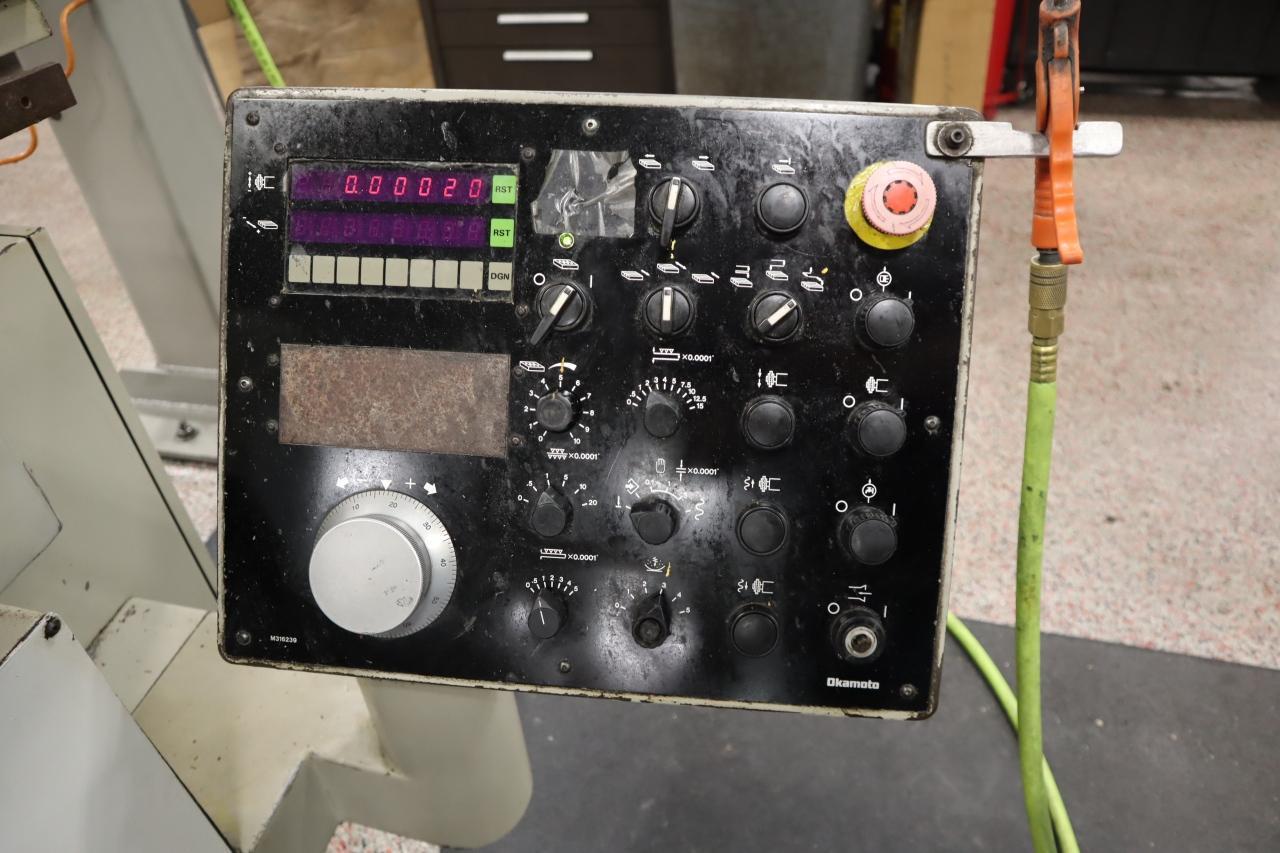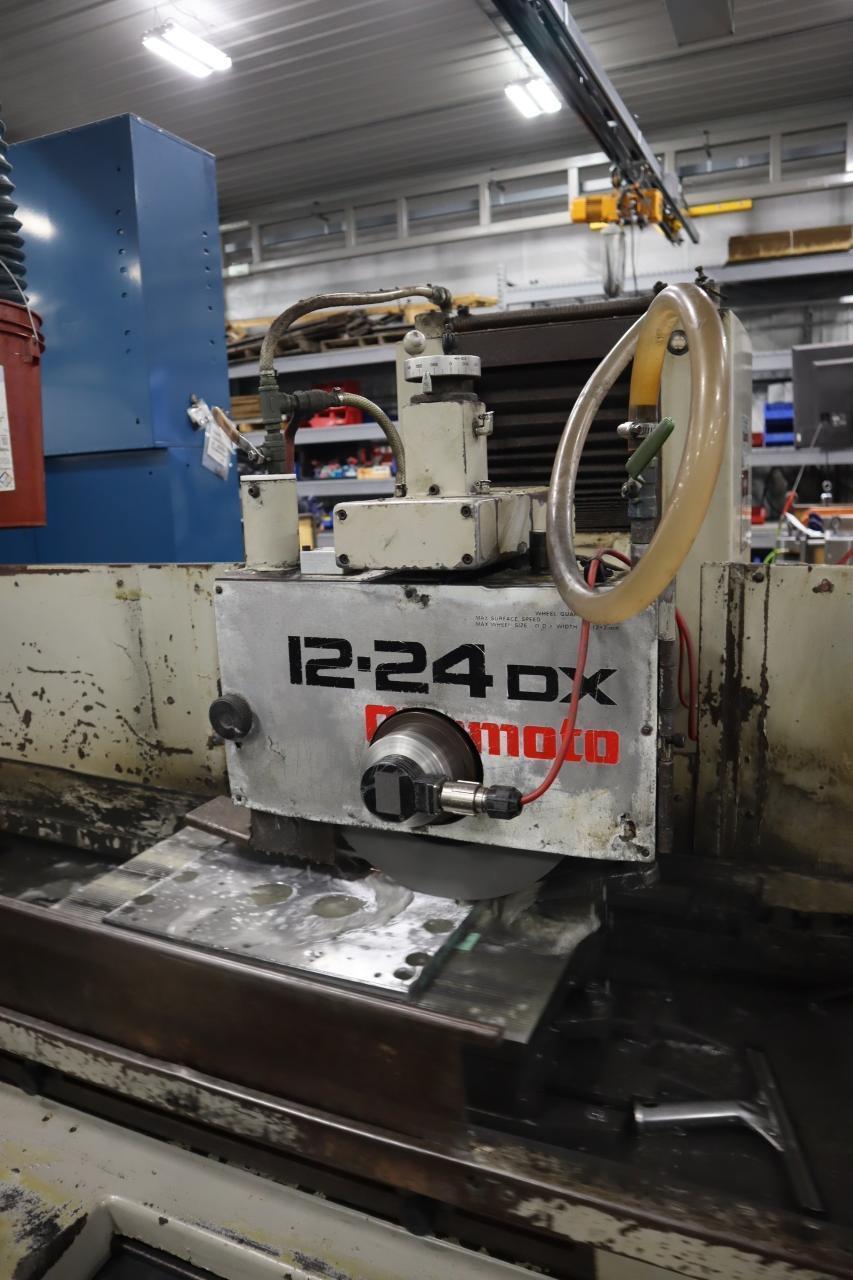 Table Working Surface: 12" x 24" Max Chuck Size: 12" X 24" Max Table Movement (Manual): 29.5" Max Distance Spindle / Wheel to Table: 13.6" Max Table Load (Including Chuck): 925 Lbs. Wheel Speed: 1,800 RPM Auto Longitudinal Feed Rate: 3 - 82 FPM Max Wheel Size : 14" Diameter (12" x 1.5" x 1" STD) Rapid Wheelhead Feed Rate: 40 IPM Hydraulic Motor: .010 - 40 Feet Per Minute Auto Wheelhead Downfeed Increments: .0005" - .0015" Spindle Drive: 5 HP Equipped With: 3-Axis Automatic with Servo Incremental Downfeed, 12" x 24" Fine-Pole Long-Pole Electromagnetic Chuck, LED Readout for Vertical Feed, Manual Over-the-Wheel Dresser, Wheel Hub and Nut, Coolant System with Paper Filtration Electrics: 230/460 Volt, 3 Phase, Currently wired for 460 VAC |